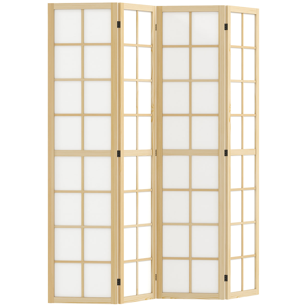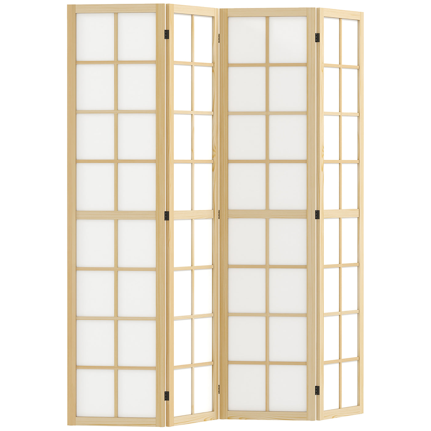 HOMCOM 4 Panel Folding Room Divider, Freestanding Room Separator, Indoor Privacy Screen for Living Room, Bedroom, 160 x 170cm - Natural wood finish