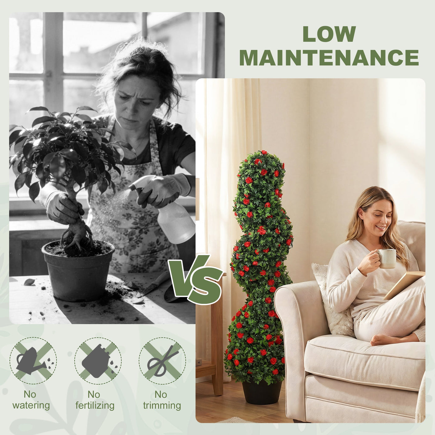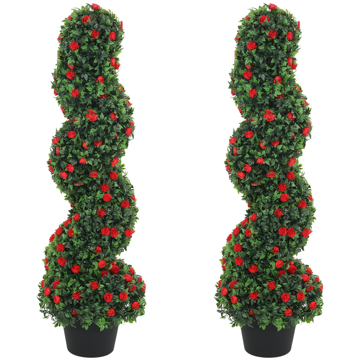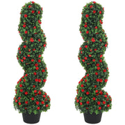 HOMCOM Artificial Rose Spiral Topiary Tree Set of 2, Indoor Outdoor Fake Plants with 630 Leaves, 90cm - Red