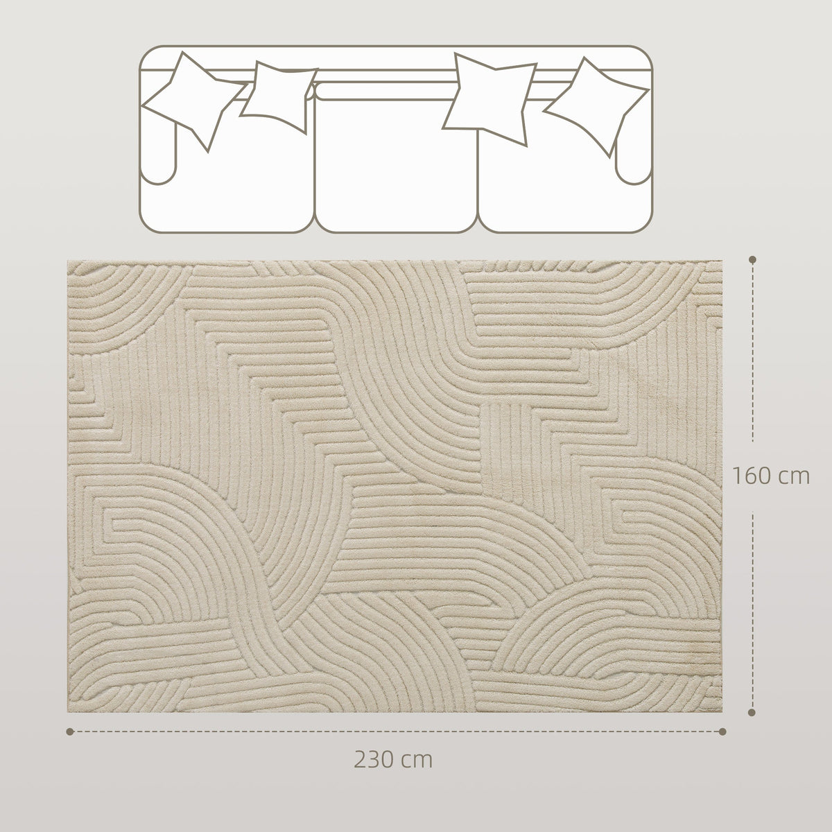 HOMCOM Modern Geometric Rug, Thick & Plush, Non-Slip, 230 x 160 cm â Cream, Living Room/Bedroom/Office - Cream