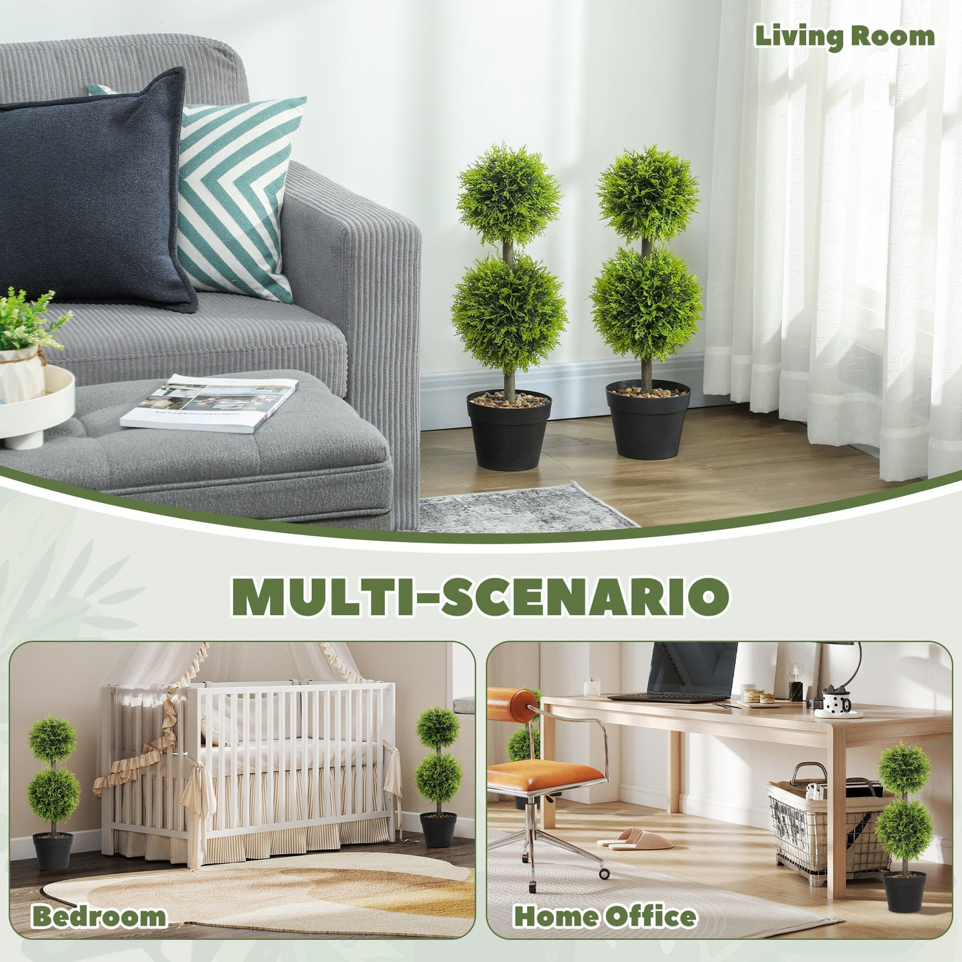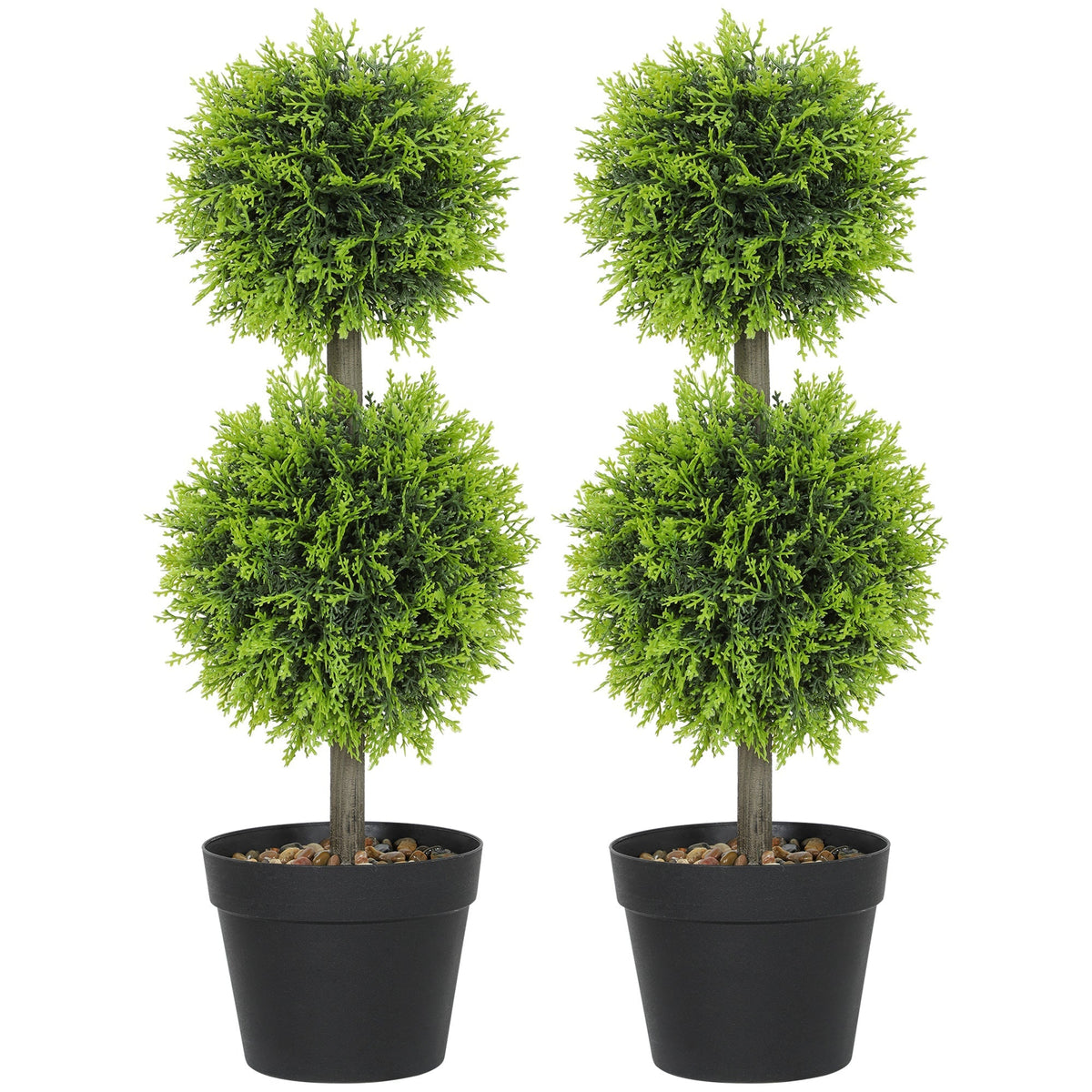 Transform your space with the HOMCOM Set of 2 Artificial Topiary Cypress Plants. Featuring a stylish double-ball design with 213...