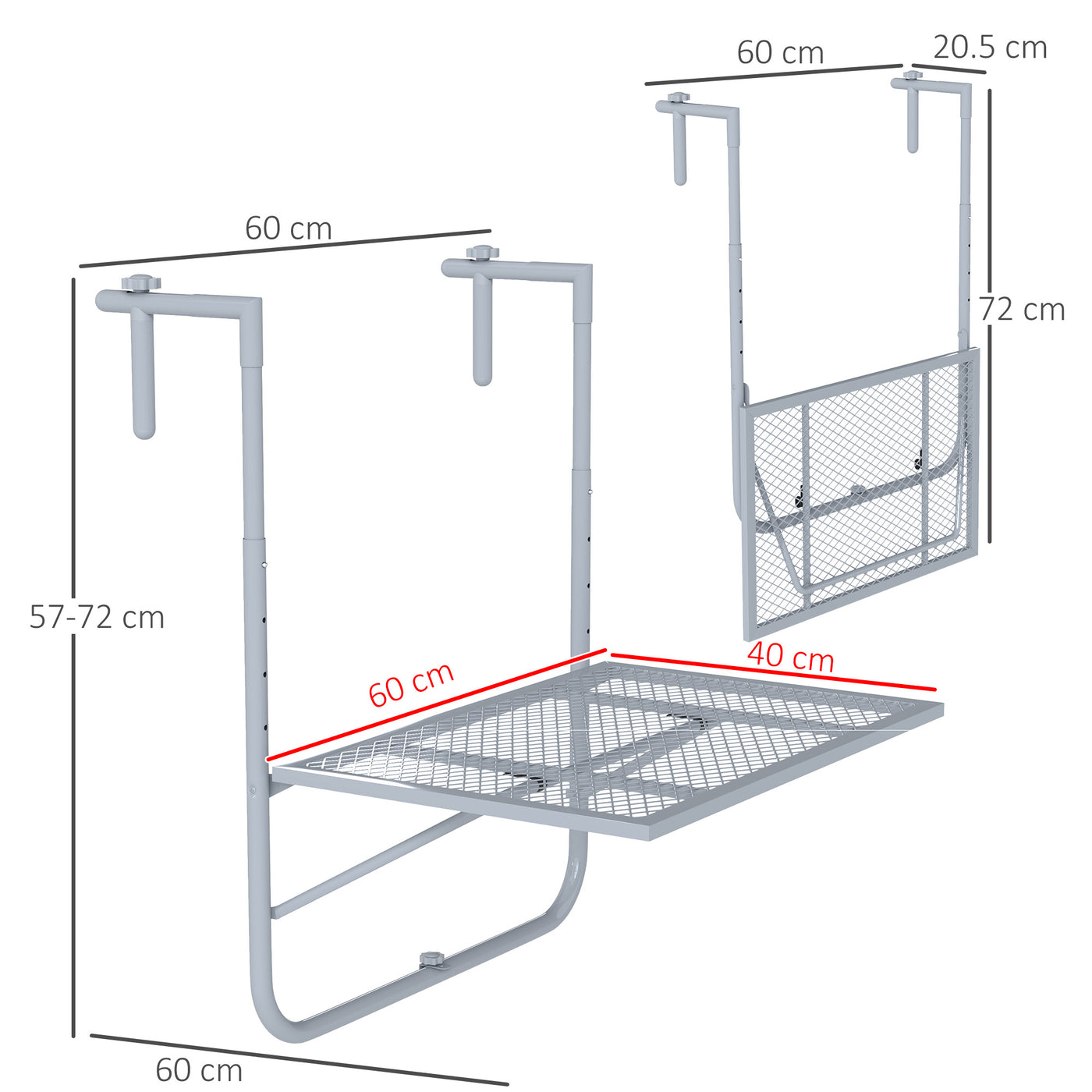 Outsunny Balcony Hanging Table, Metal Wall Mount Desk, Adjustable Folding Balcony Deck Table for Patio and Garden, Grey - Grey