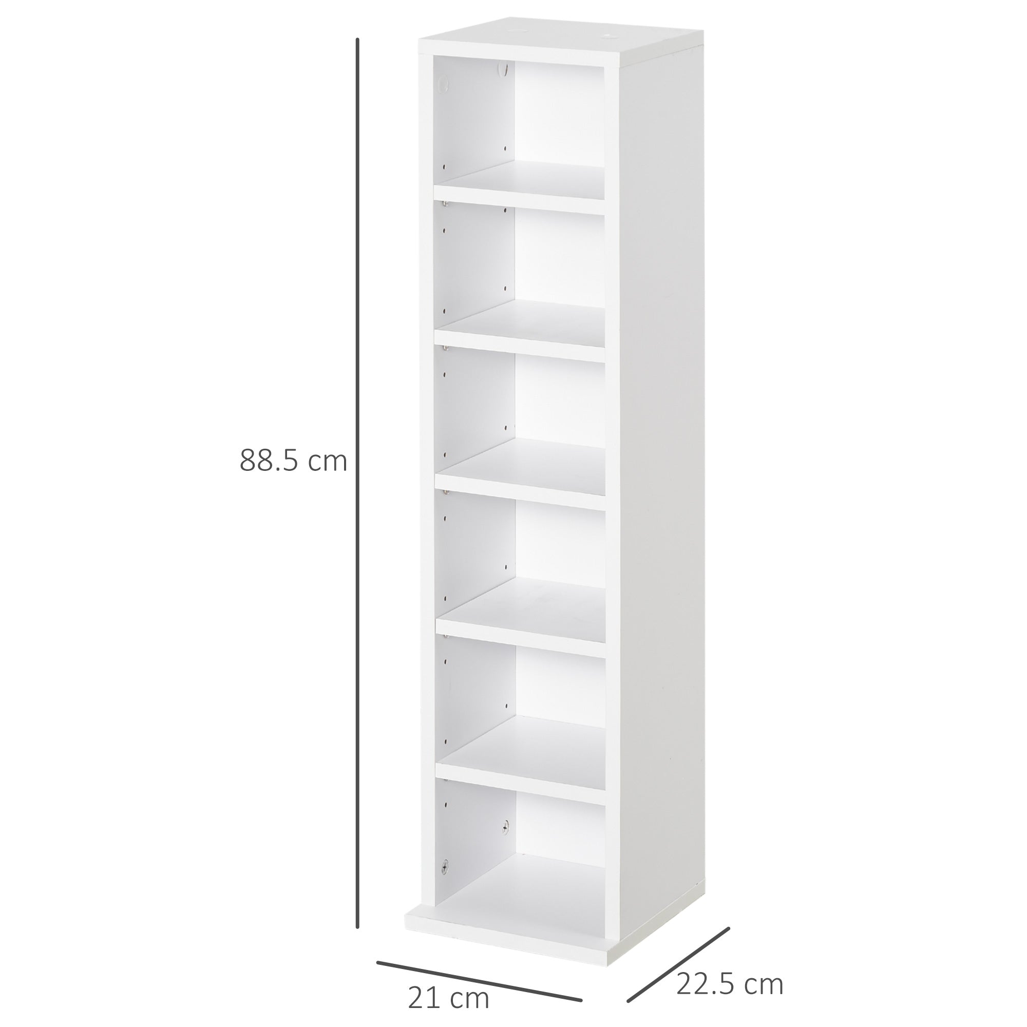 HOMCOM 204 CD Media Display Shelf Unit Set of 2 Blu-Ray Tower Rack w/ Adjustable Shelves Bookcase Storage Organiser, White - White