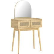 HOMCOM Dressing Table, Compact Vanity Desk with Mirror and 2 Drawers, Natural Wood Finish - Natural wood finish