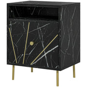 HOMCOM Elegant Bedside with Storage - Black/Gold Tone - Black Marble Effect