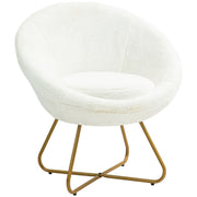 HOMCOM Faux Fur Accent Chair with Golden Metal Legs, Upholstered Comfy Tub Chair with Non-Slip Footpads, Seat Cushion for Bedroom, Living Room and Office, White - White