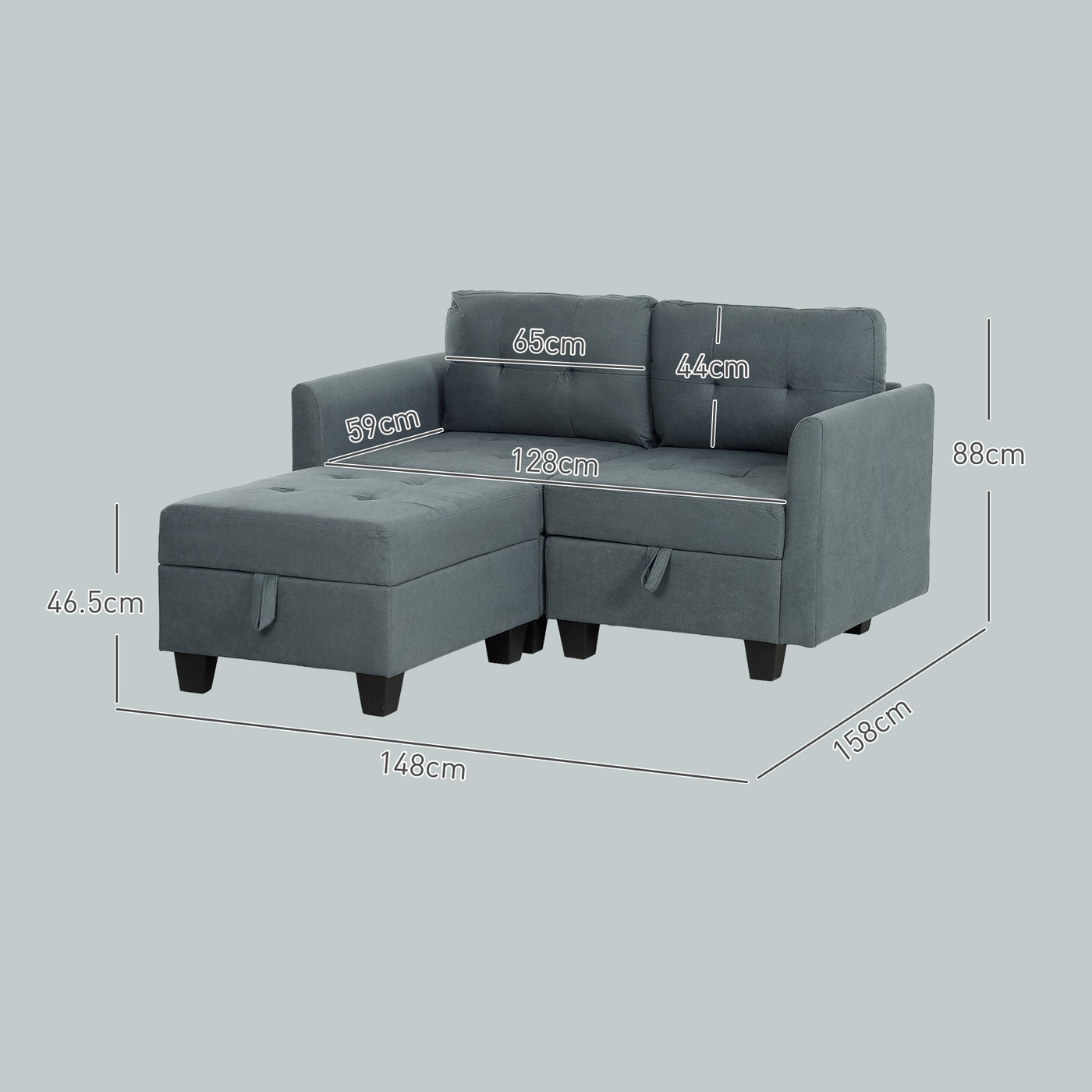 HOMCOM 'L' Shape Modular Storage Sofa - Dark Grey - Dark Grey