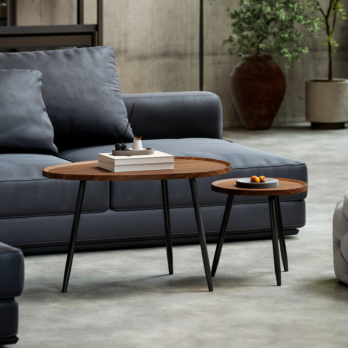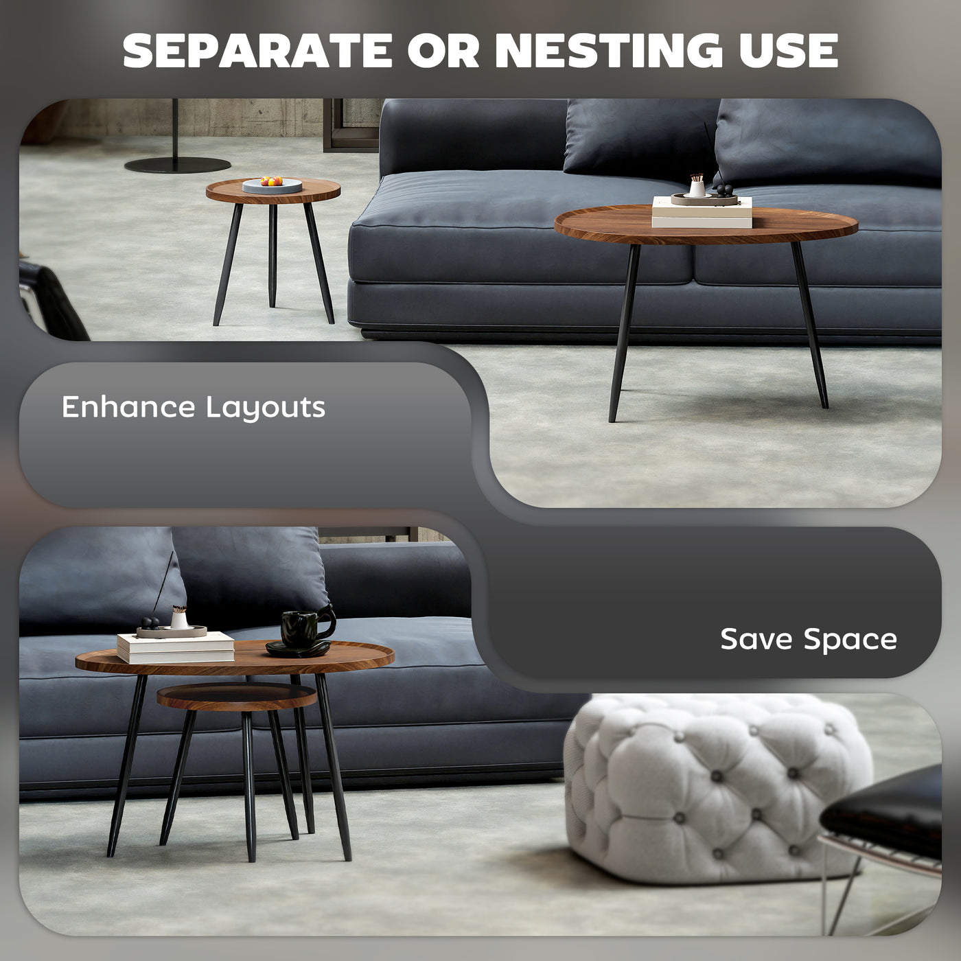 HOMCOM Nesting Coffee Table Set of 2, 80cm Modern Stacking End Side Table with Metal Legs for Living Room Bedroom Office, Chestnut Wood Effect - Chestnut