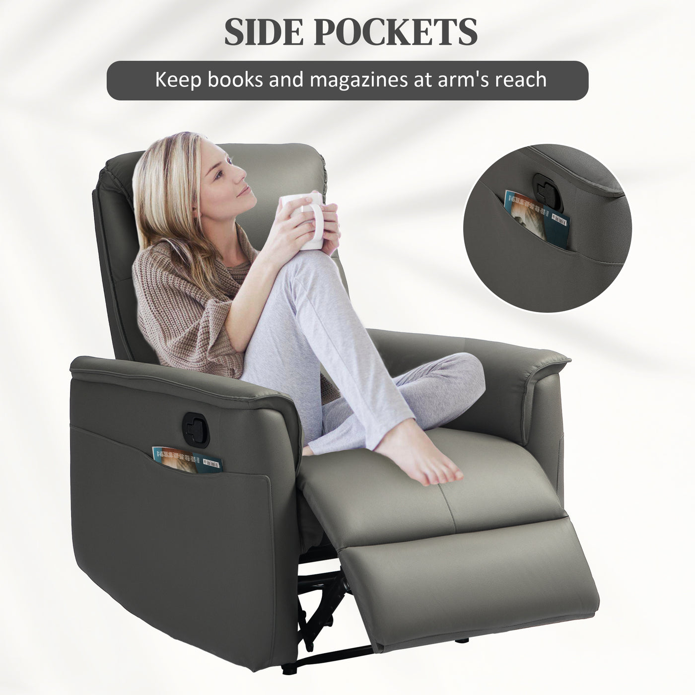 HOMCOM Recliner Armchair with Thick Padded Spring Cushion, Microfibre Manual Reclining Chair with Adjustable Leg Rest, Side Pockets for Living Room, Bedroom, Light Grey - Light Grey