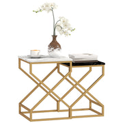 HOMCOM Set of Two Marble-Effect Nesting Tables - Black, White