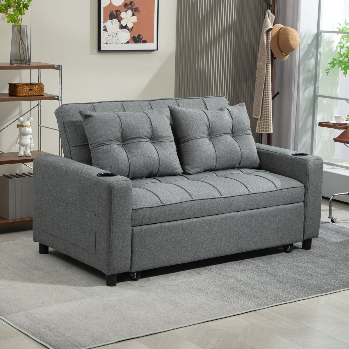 HOMCOM Two-Seater Pull-Out Sofa Bed - Charcoal Grey
