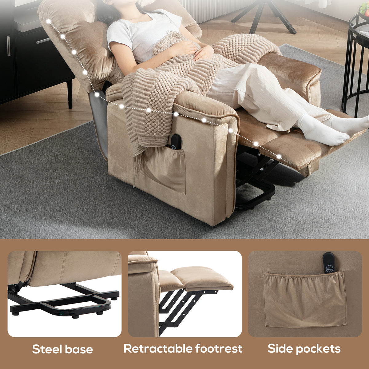 HOMCOM Velvet-Feel Electric Lift Recliner Chair - Brown - Beige