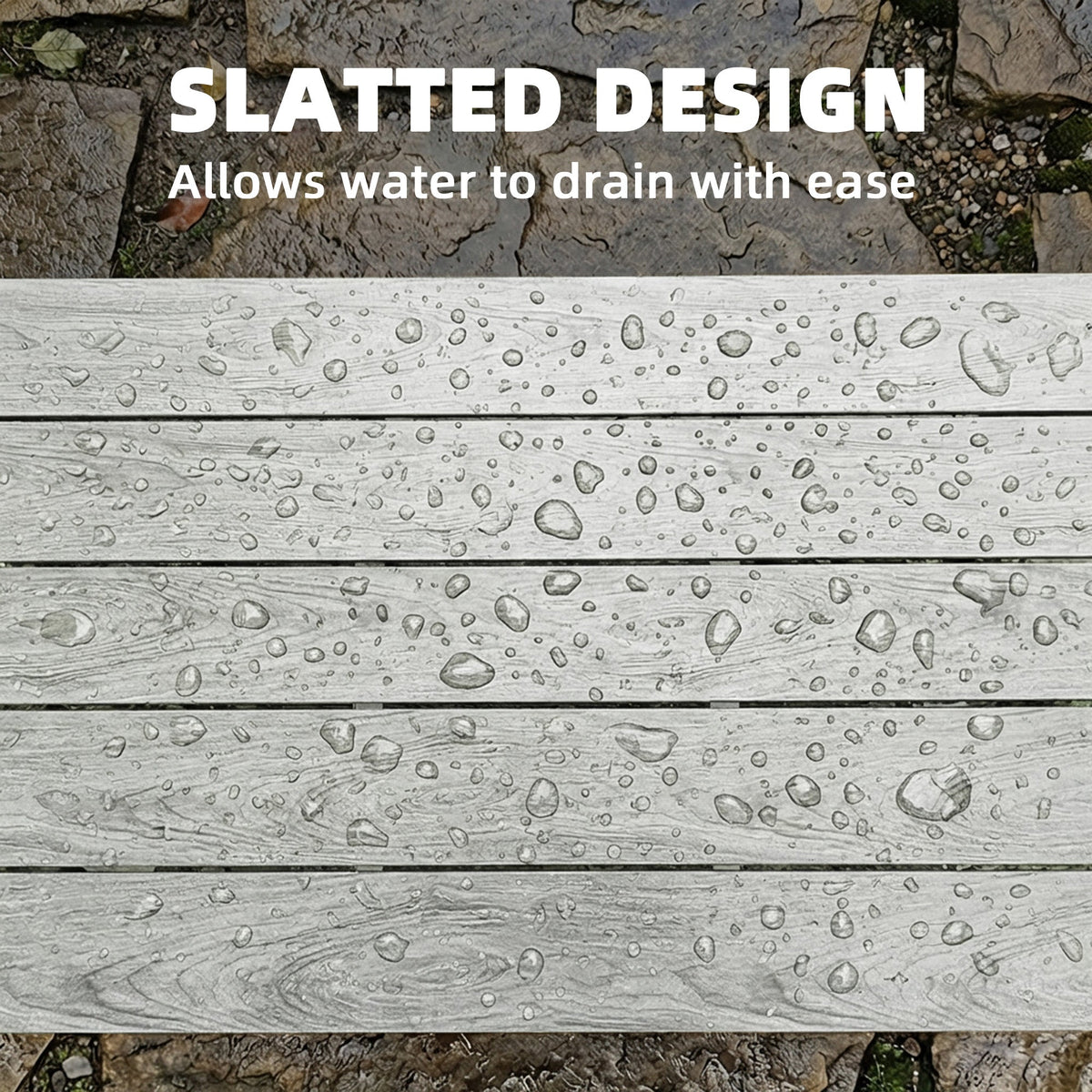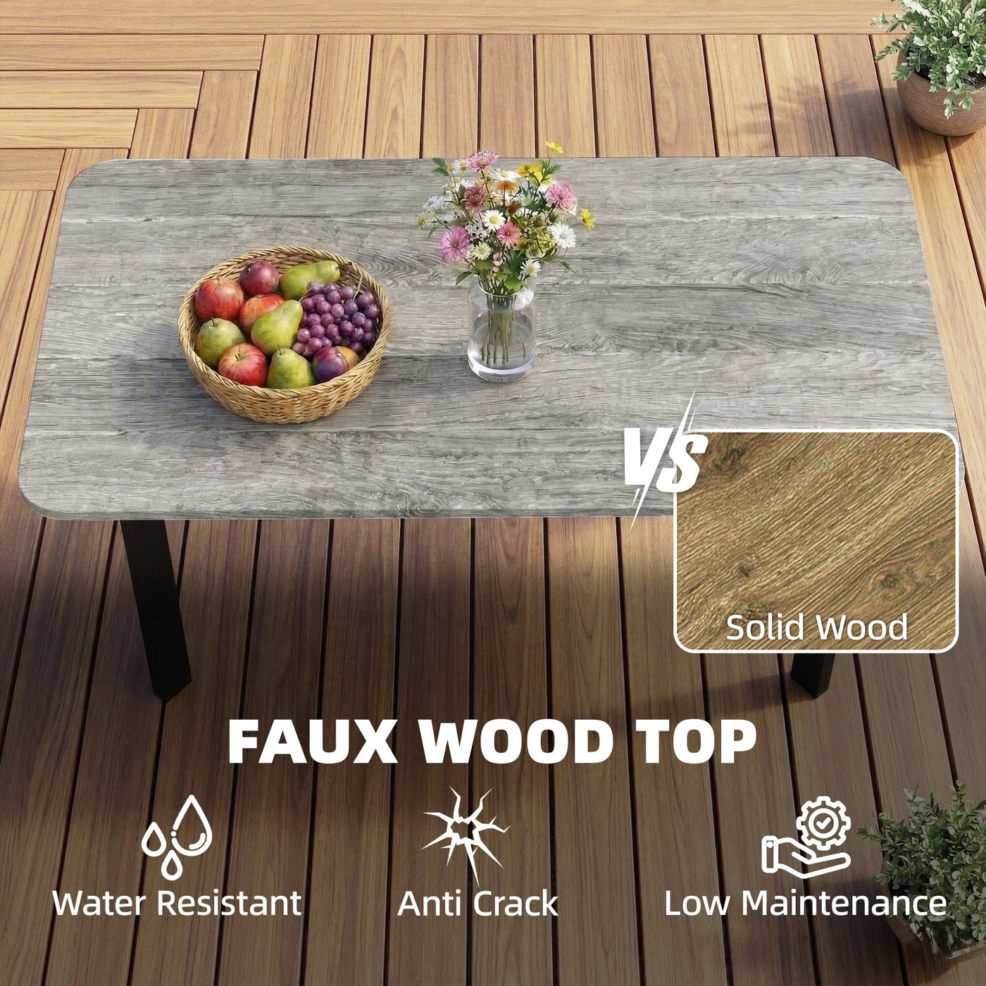 Outsunny Outdoor Garden Coffee Table, Garden Table with Slatted Wood Plastic Composite Top and Metal Frame, Grey - Grey