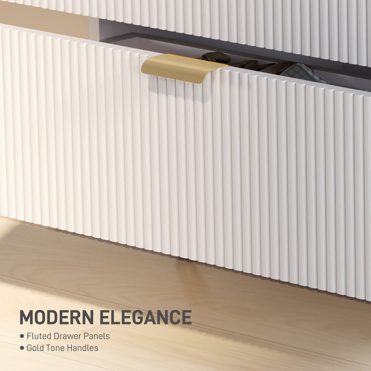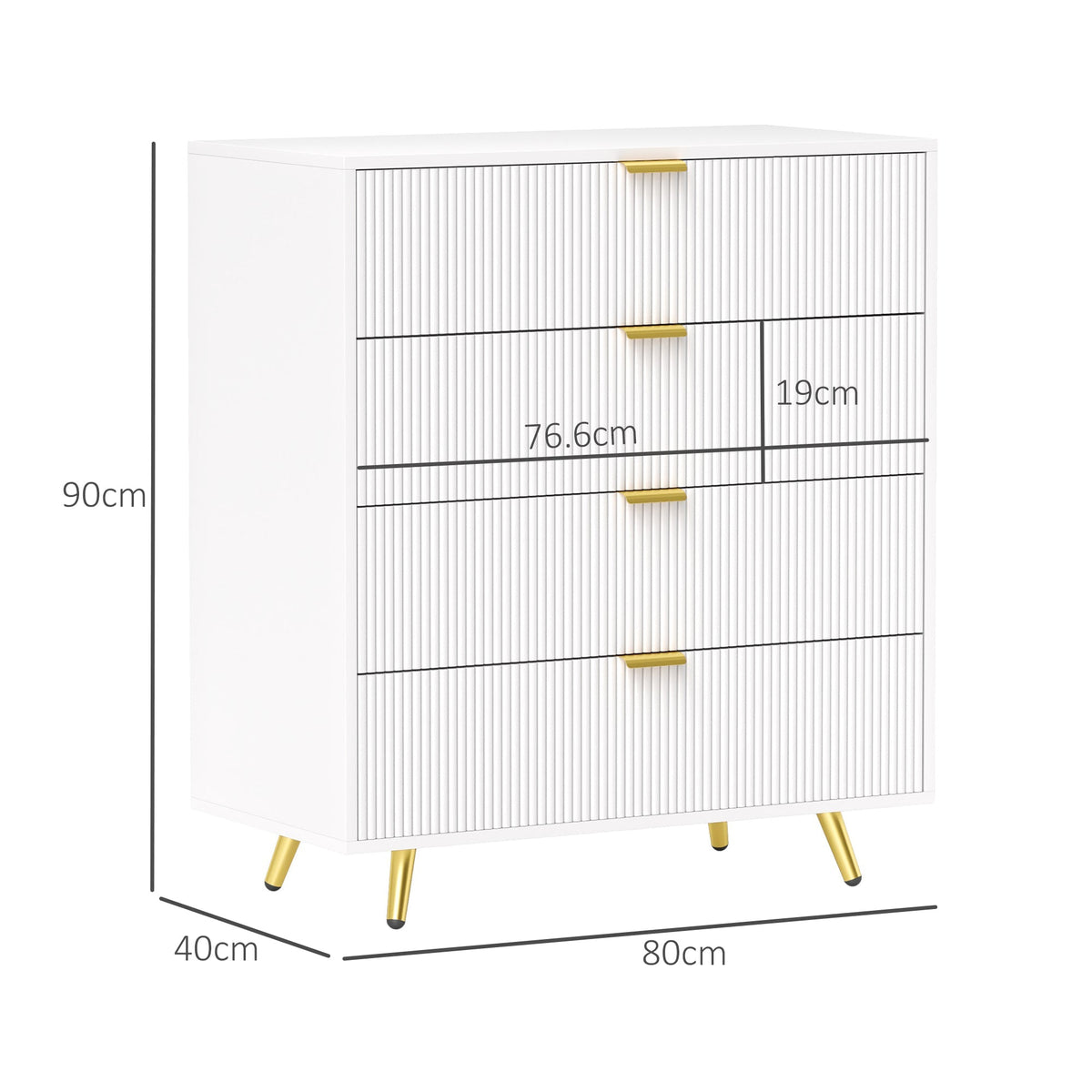 HOMCOM Elegant Four-Drawer Bedside Table - White - White