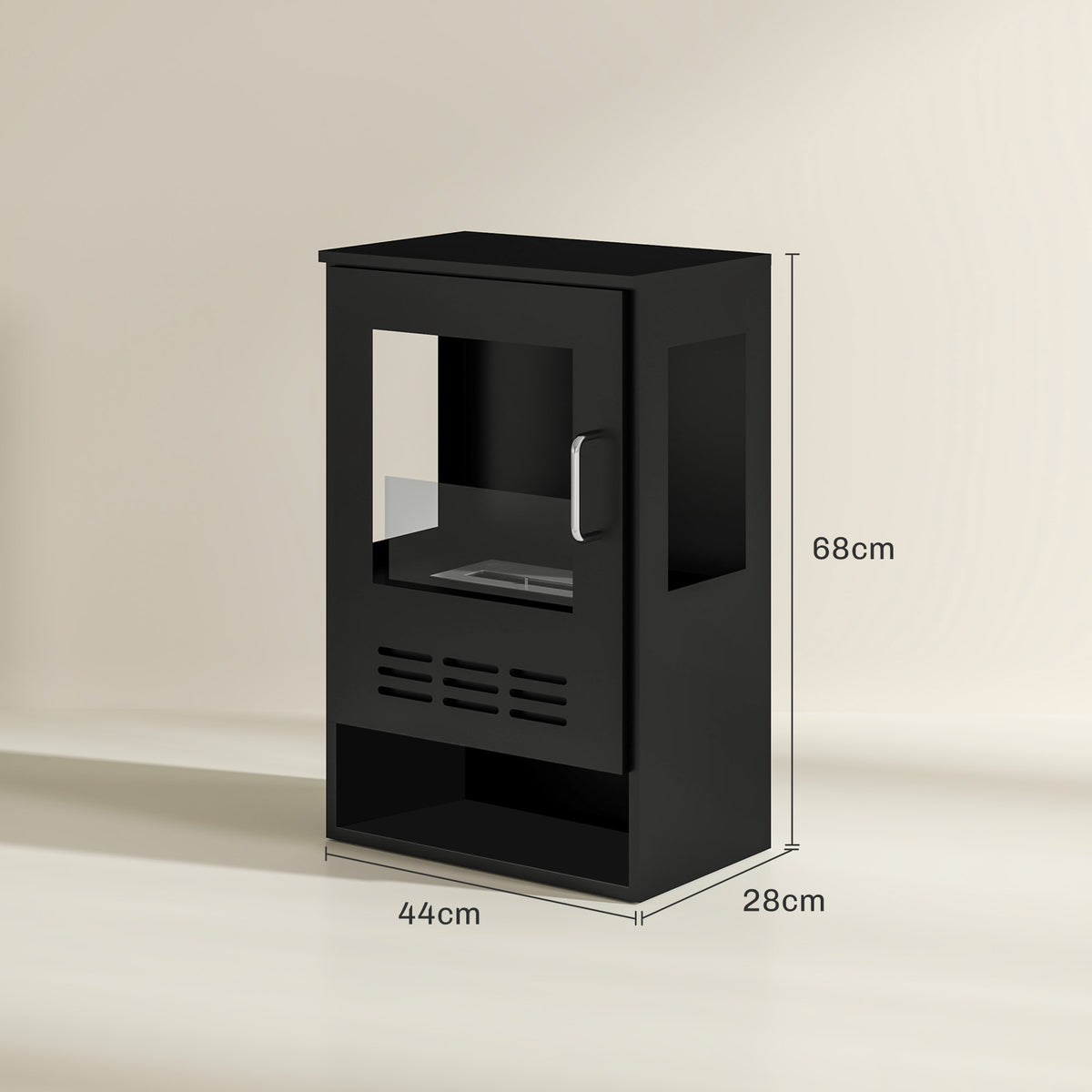 HOMCOM Ethanol Fireplace Stove with Shelf, Freestanding Bioethanol Fire, Indoor Ethanol Burner with 0.9 Litres Volume, Burns for Up to 3.3 Hours, 27 Inch, Black - Black