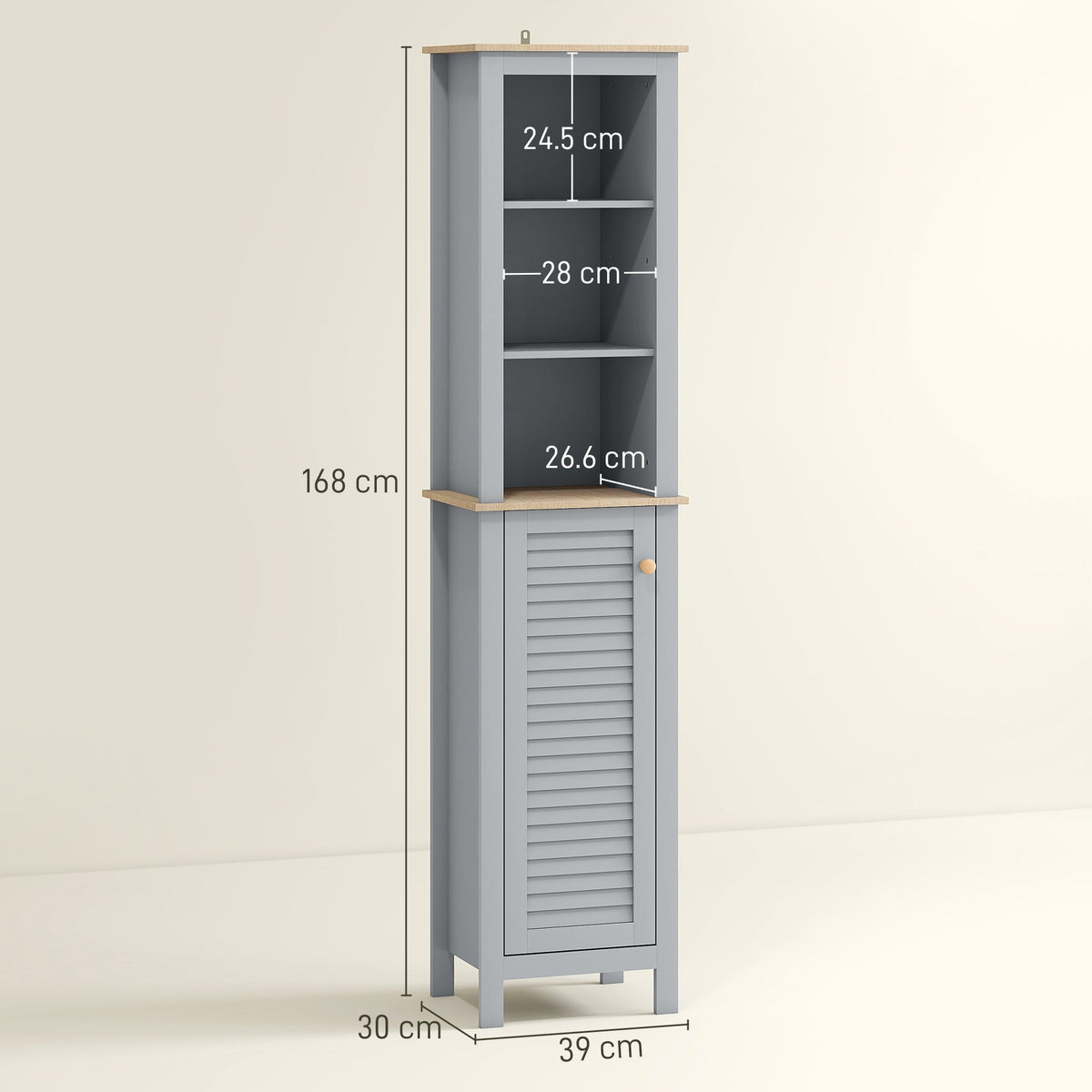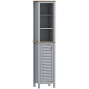kleankin Bathroom Floor Storage Cabinet with 3 Tier Shelf and Cupboard with Door, Free Standing Linen Tower, Tall Slim Side Organizer Shelves, Grey - Grey