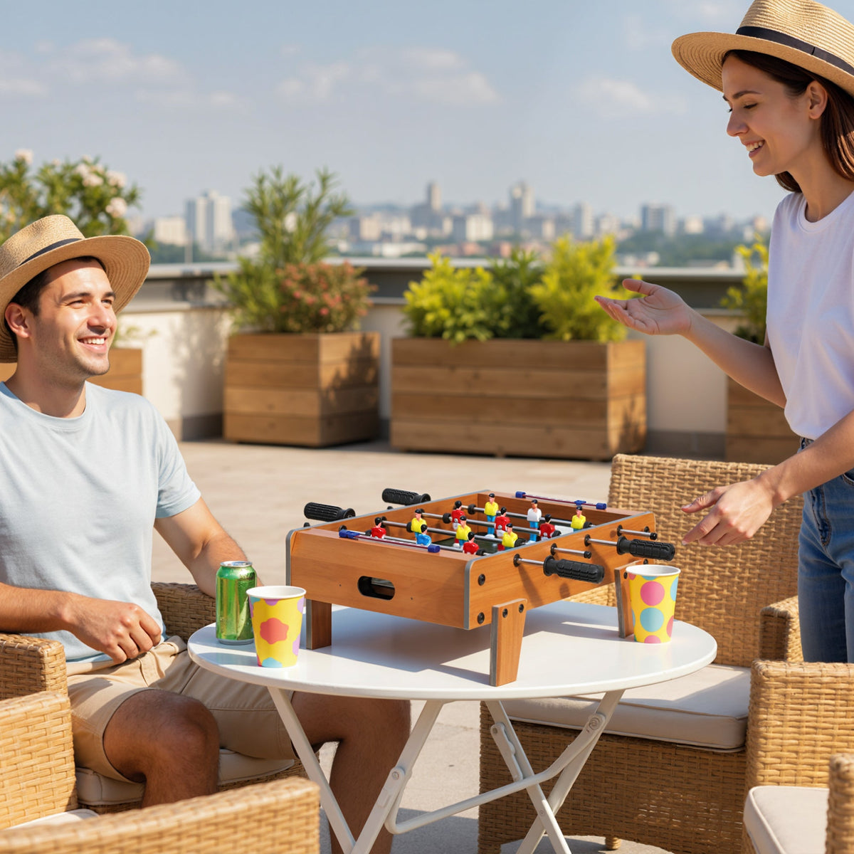 SPORTNOW 20 in Table-top Football Table with Stainless Steel Rods, Compact Foosball Table for Kids and Adults, All-Inclusive Foosball Game Set for Indoor, Nature Wood Finish - Natural wood finish