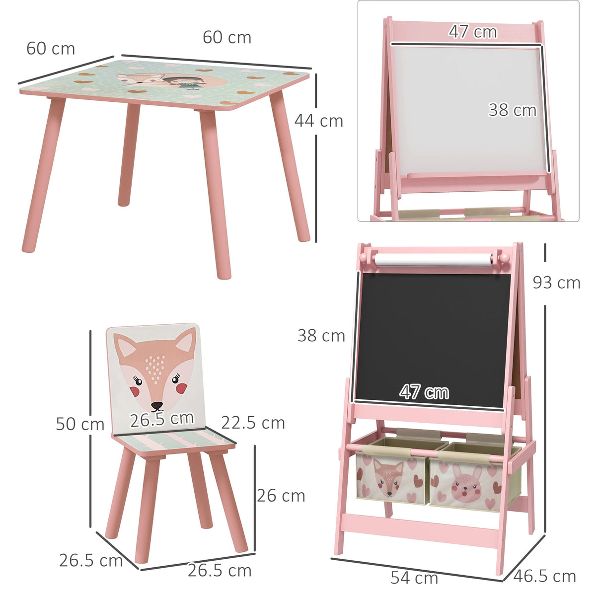 ZONEKIZ Kids Table and Chair Set and Kids Easel with Paper Roll, Storage Baskets, Kids Activity Furniture Set, Pink - Pink