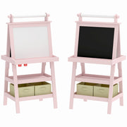 AIYAPLAY 3 in 1 Kids Easel Double-Sided Magnetic Whiteboard and Chalkboard with Paper Roll, Storage Baskets - Pink - Pink