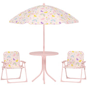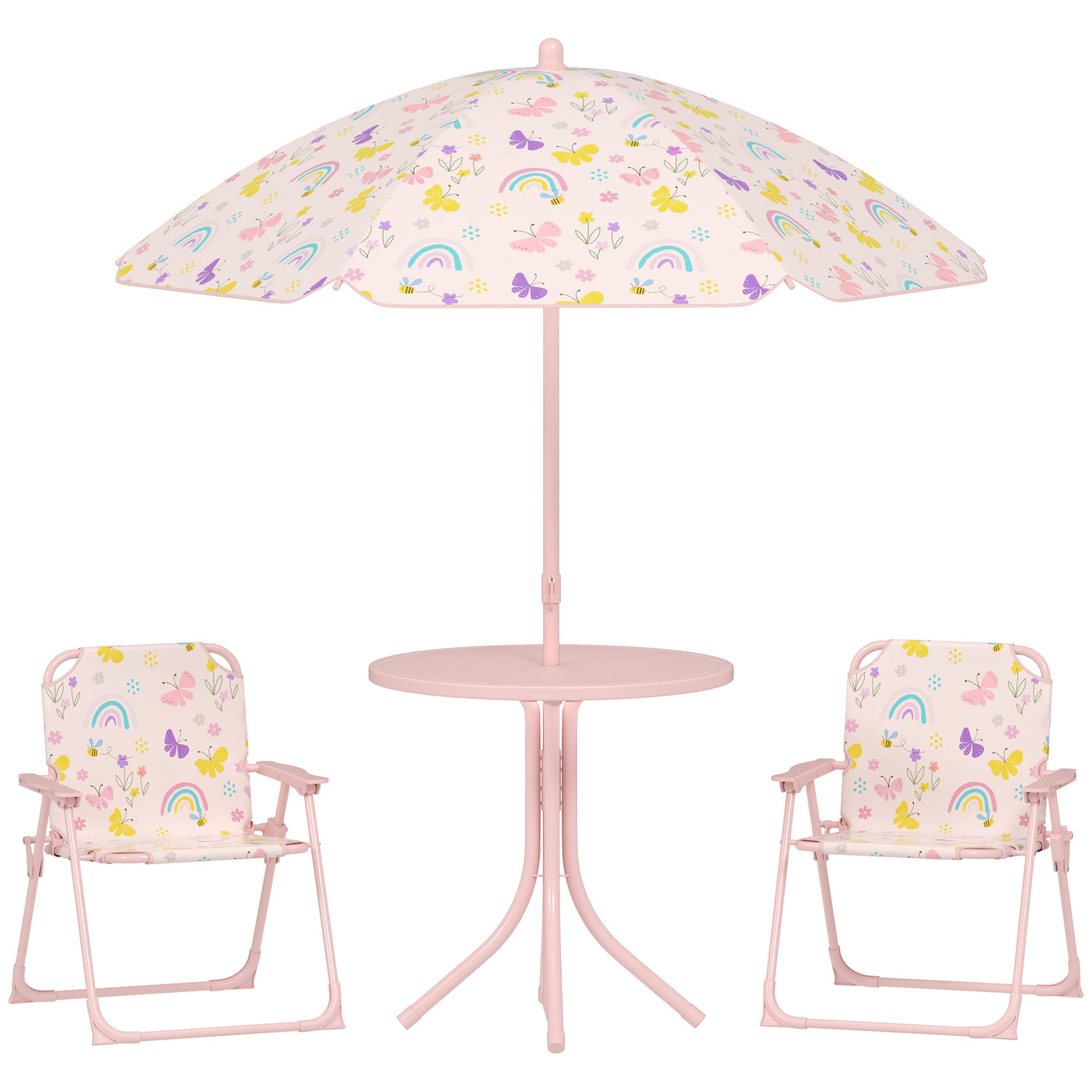 AIYAPLAY 4-Piece Kids Garden Table and Chair Set with Adjustable Parasol, Folding Chairs, Table, Rainbow Pattern, Pink - Pink