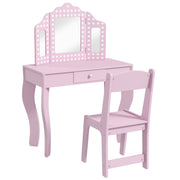 AIYAPLAY Kids Dressing Table Sets with Stool and Tri-Fold Mirror, Drawer for Playroom, Bedroom - Pink - Pink