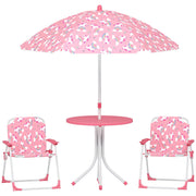 AIYAPLAY Kids Patio Table and Chair Set, Kids Garden Furniture with Umbrella, 4-Piece Bistro Set for Garden, Pink - Pink