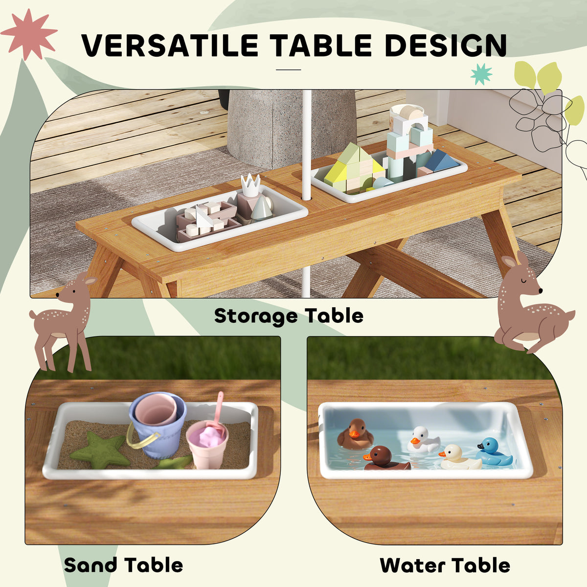 AIYAPLAY Kids Picnic Table, Sand and Water Table with Wooden Benches, Adjustable Parasol and Storage Bins, Multicolour - Multicolour