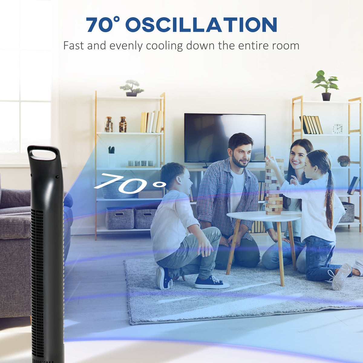 HOMCOM 31" Oscillating Tower Fan with Remote Control, 7.5H Timer, 3 Speed 3 Modes, Electric Floor Standing Cooling Fan for Home Bedroom Office, Black - Black