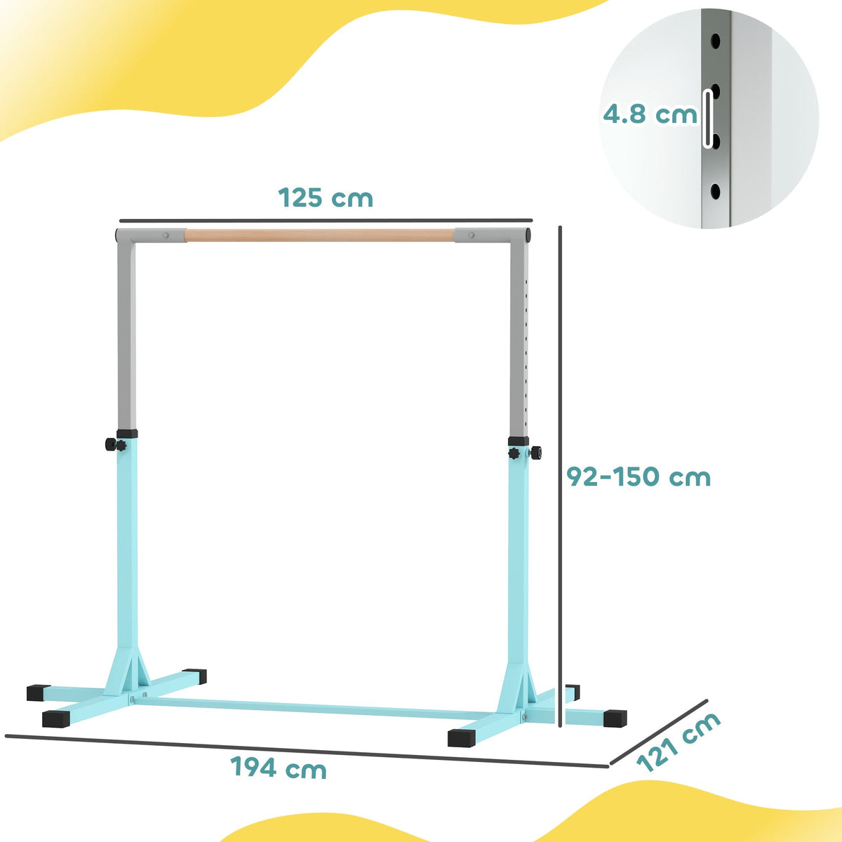 HOMCOM Height Adjustable Gymnastics Horizontal Bar for Kids, Children Junior Kip High Bar Fitness, Light Blue - Blue