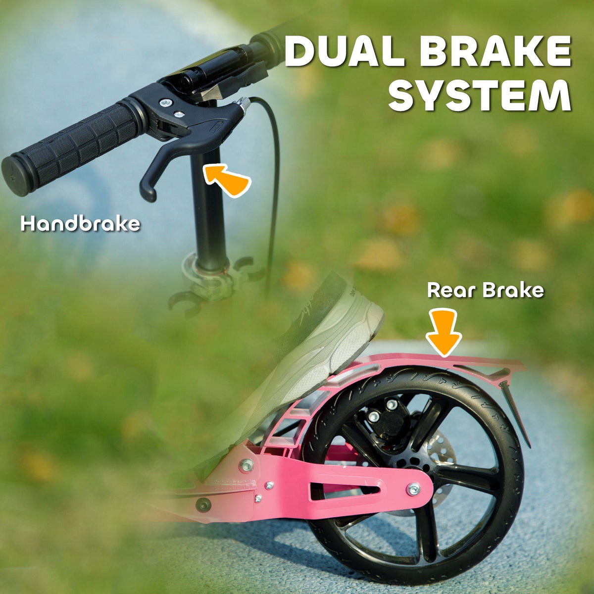AIYAPLAY Kids Scooter with Four-Level Adjustable Handlebar, Dual Brake System, 200mm Wheels, ABEC-7 Bearings, Pink - Pink