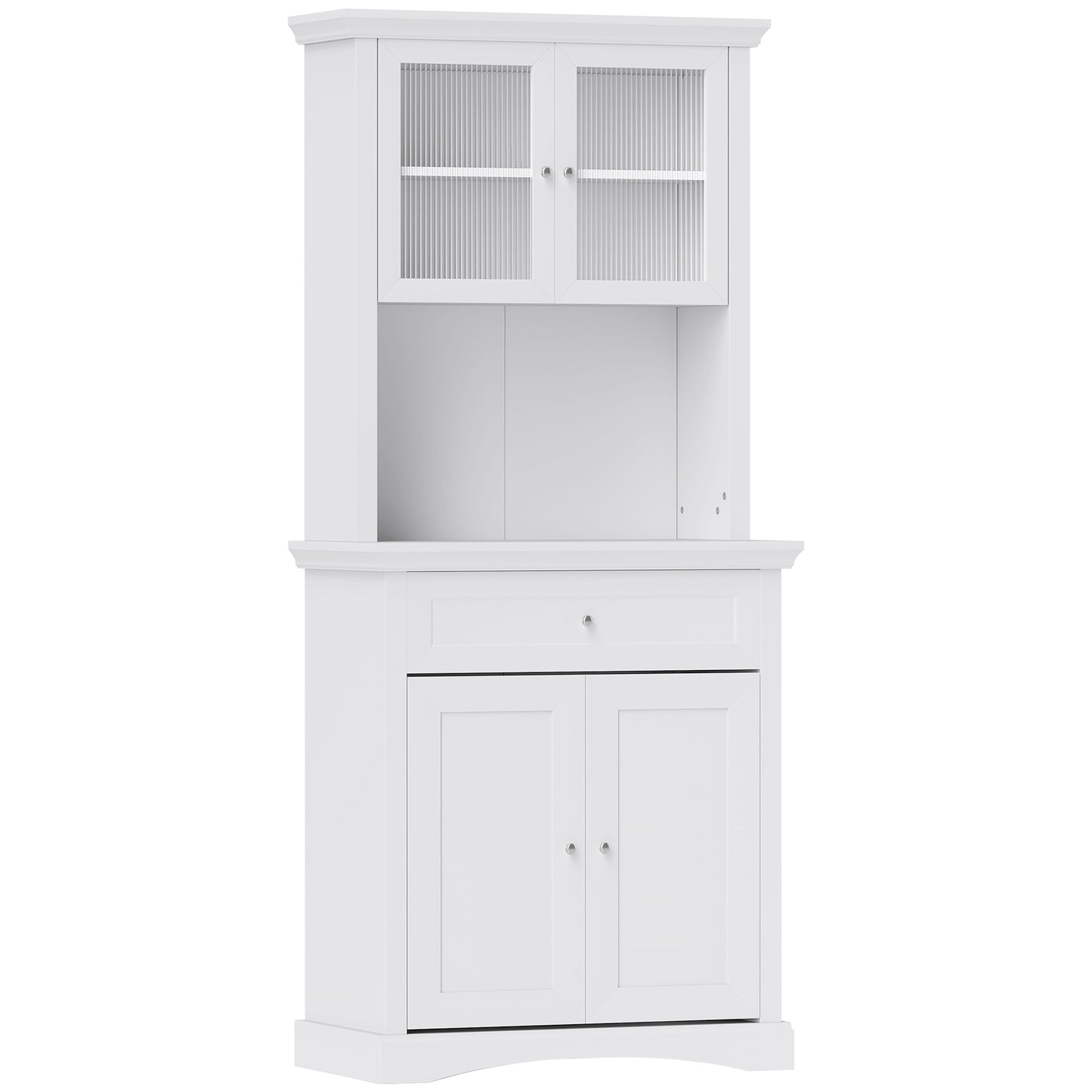 HOMCOM 4-Door Kitchen Cupboard with Drawer, Freestanding Kitchen Cabinet with Glass Doors, Adjustable Shelves and Open Counter, White - White