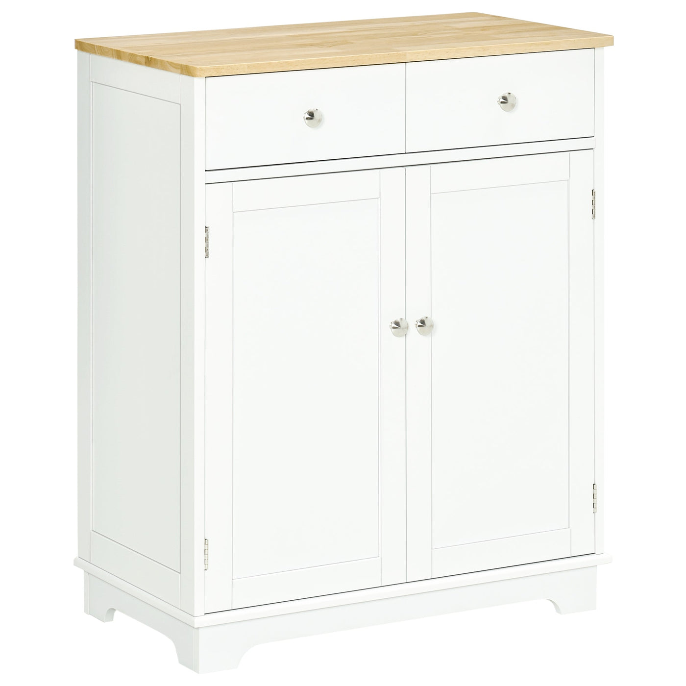 HOMCOM Kitchen Floor Cabinet Side Storage Cupboard Multi-use Sideboard Table with Solid Wood Top, Adjustable Shelf,Drawer for Dining Room, Living Room,Hallway - Nature Wood, White