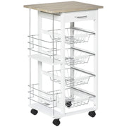 HOMCOM Rolling Kitchen Cart, Utility Storage Cart with 4 Basket Drawers & Side Racks, Wheels for Dining Room, Natural and White - Natural, White