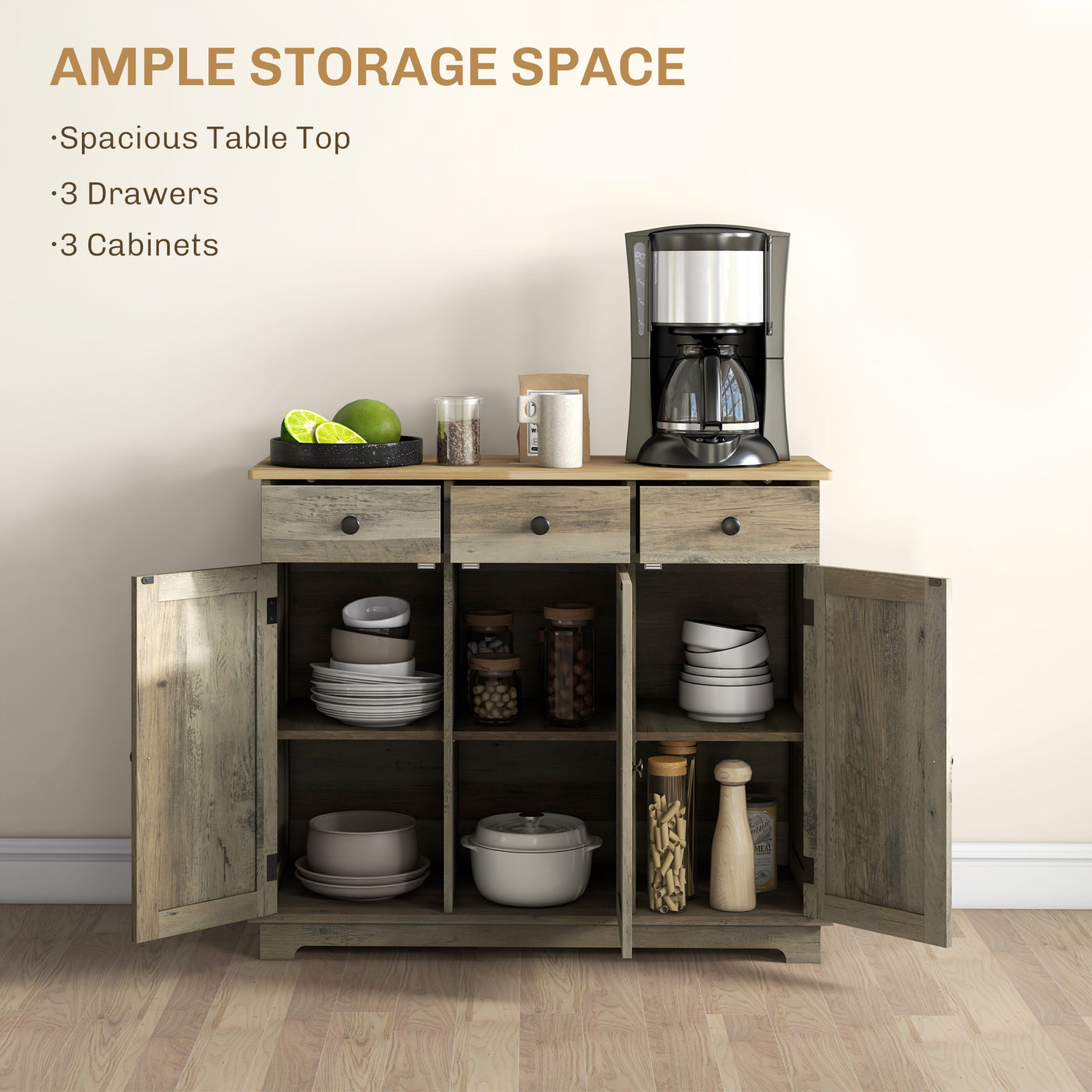 HOMCOM Sideboard with Rubber Wood Top, Modern Storage Cabinet, Kitchen Cupboard with 3 Doors, 3 Drawers and 3 Adjustable Shelves for Dining Room, Living Room, Grey Wood-Effect - Grey Wood Effect