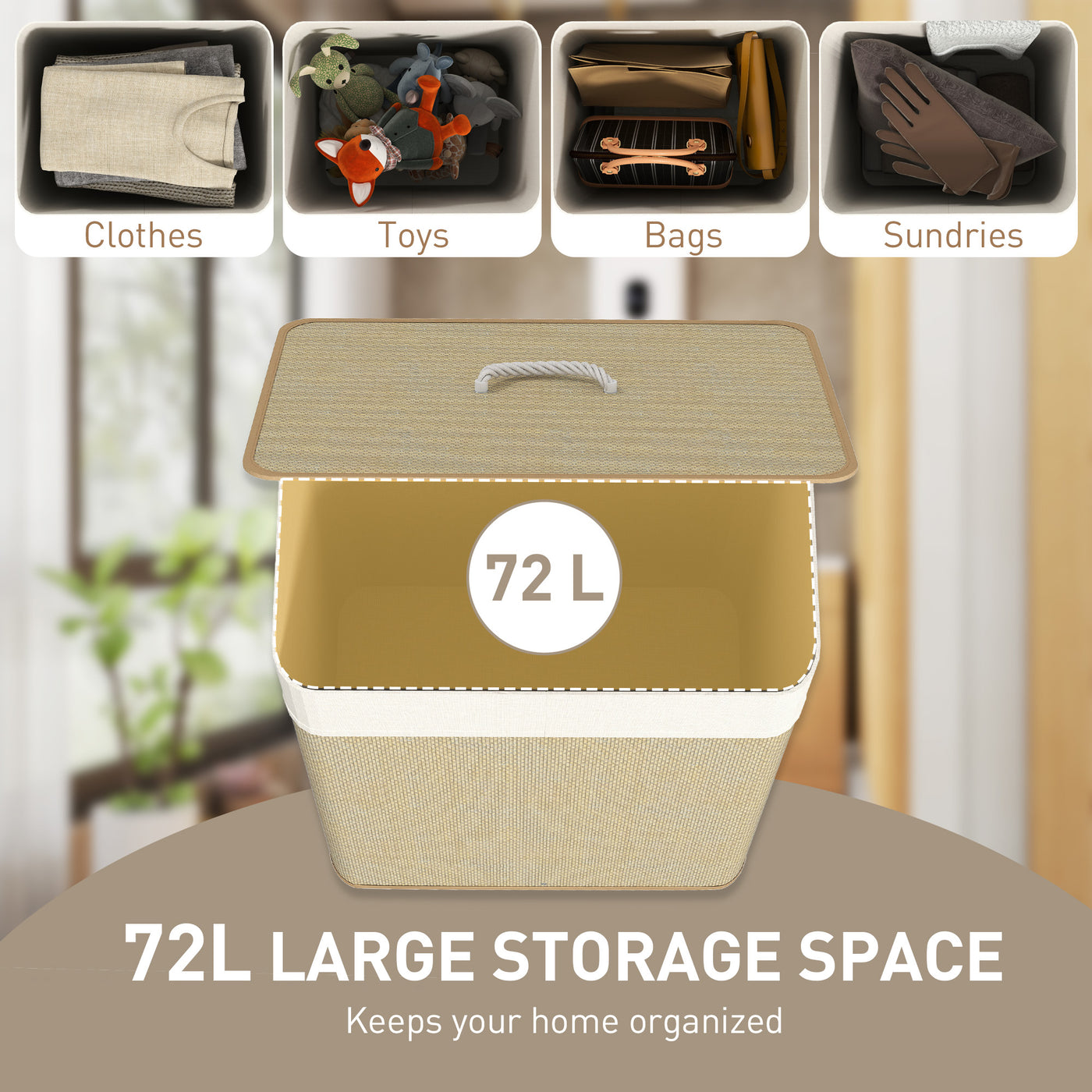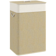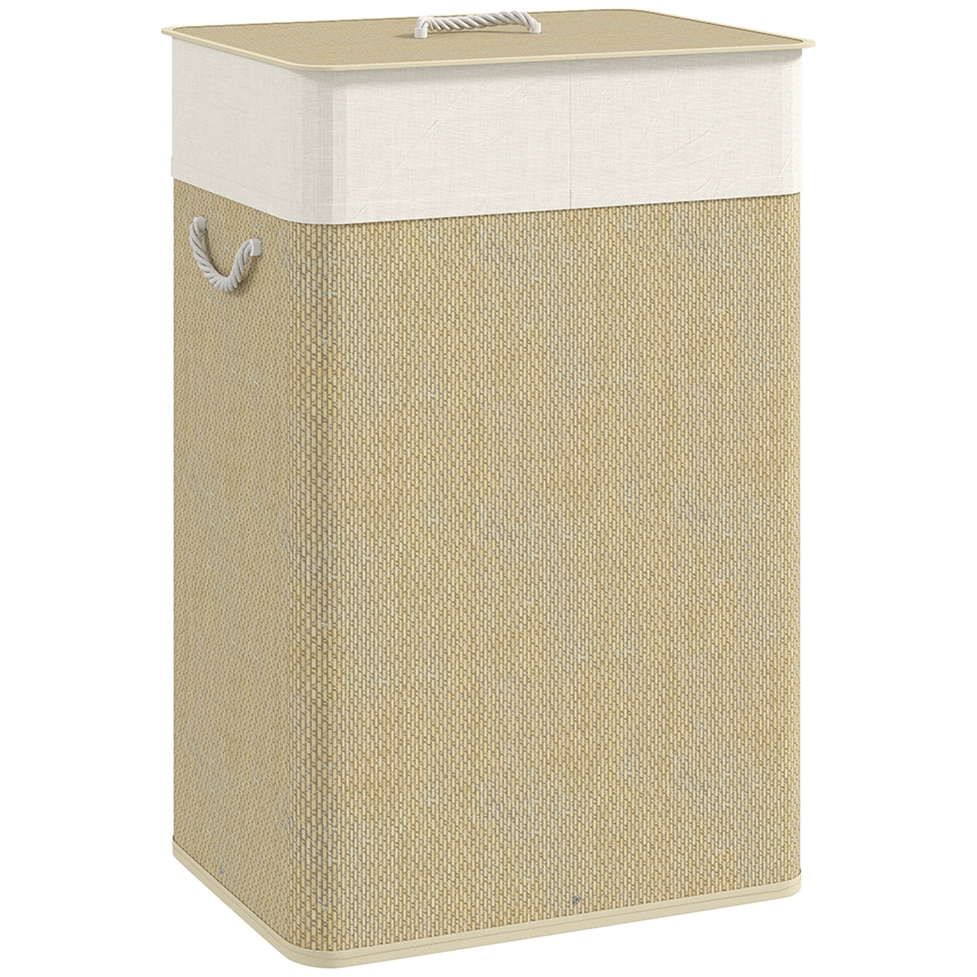 HOMCOM Bamboo Laundry Basket with Lid, 72L Laundry Hamper with Rope Handles, Washing Basket with Removable Washable Liner Bag for Bathroom, Bedroom, Nature Wood Finish - Natural wood finish