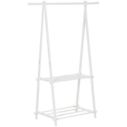 HOMCOM Minimalist Foldable Adjustable Clothes Rack Hanger w/ 2 shelves 107.5L x 45W x 150H cm Hallway Entryway Furniture - White - White