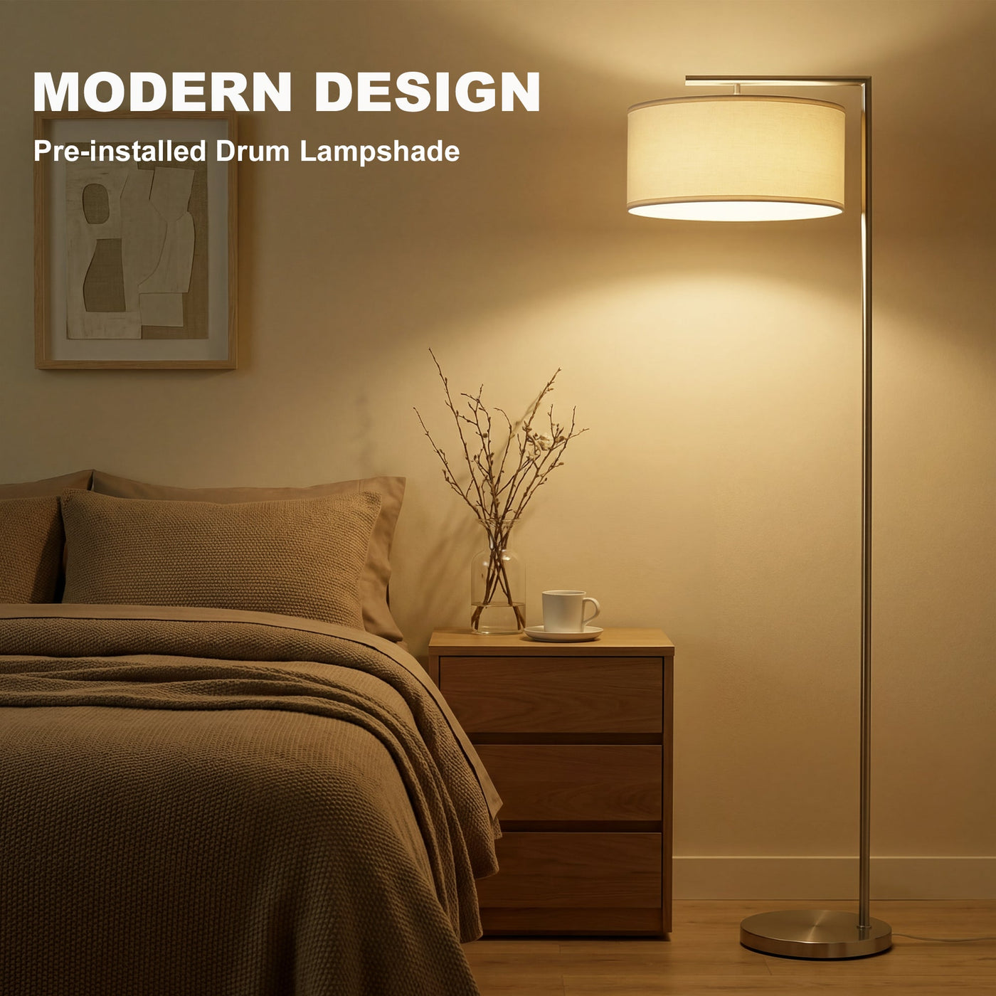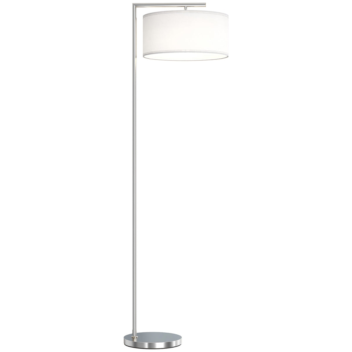 HOMCOM Floor Lamp, Modern Standing Lamp with Linen Lampshade, Round Base for Living Room, Bedroom, Dining Room, 153cm, Silver Tone - Silver