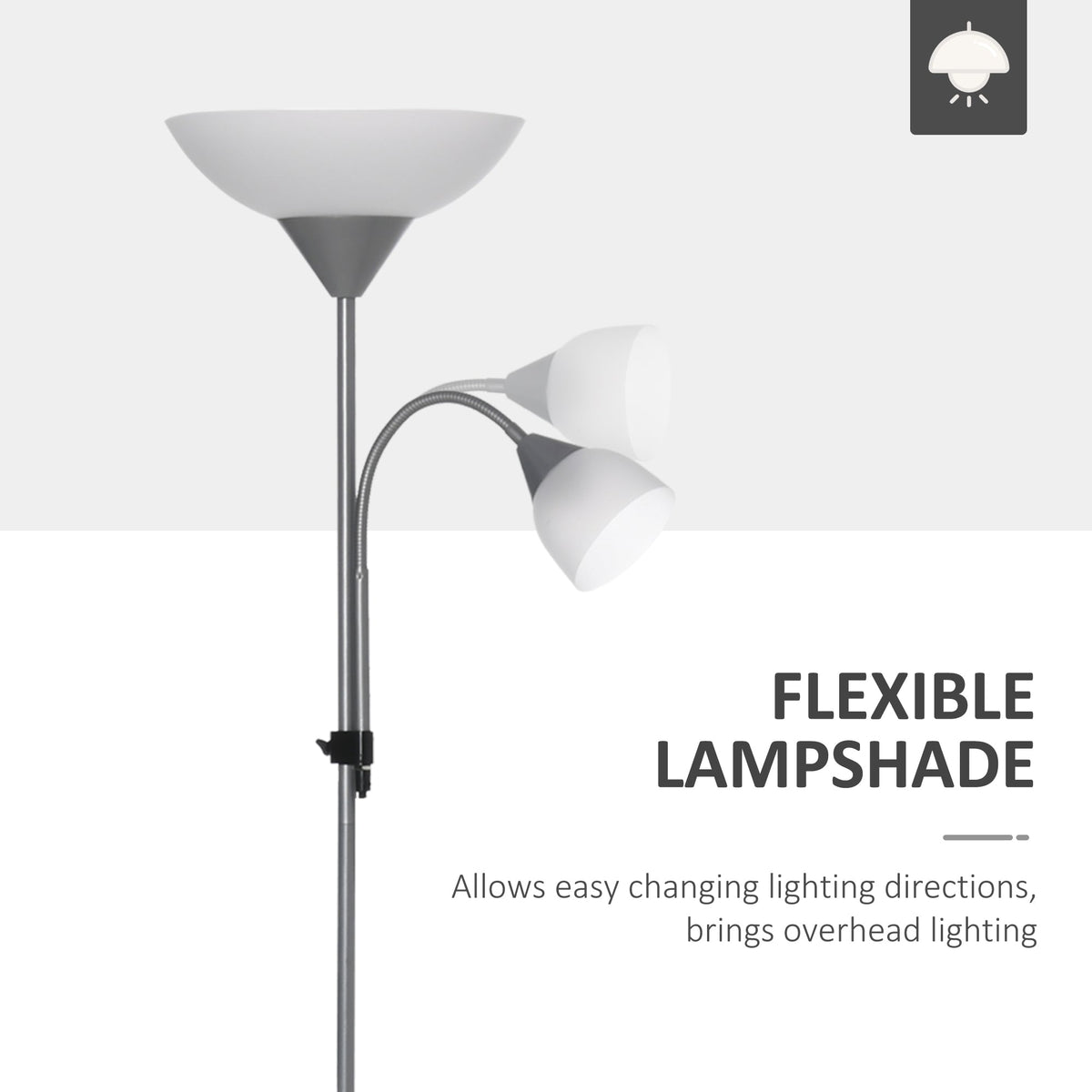 HOMCOM LED Floor Lamp for Living Room, 180cm Tall Standing Lamp, Mother and Child Uplighter with Adjustable Gooseneck, Silver Tone - Silver