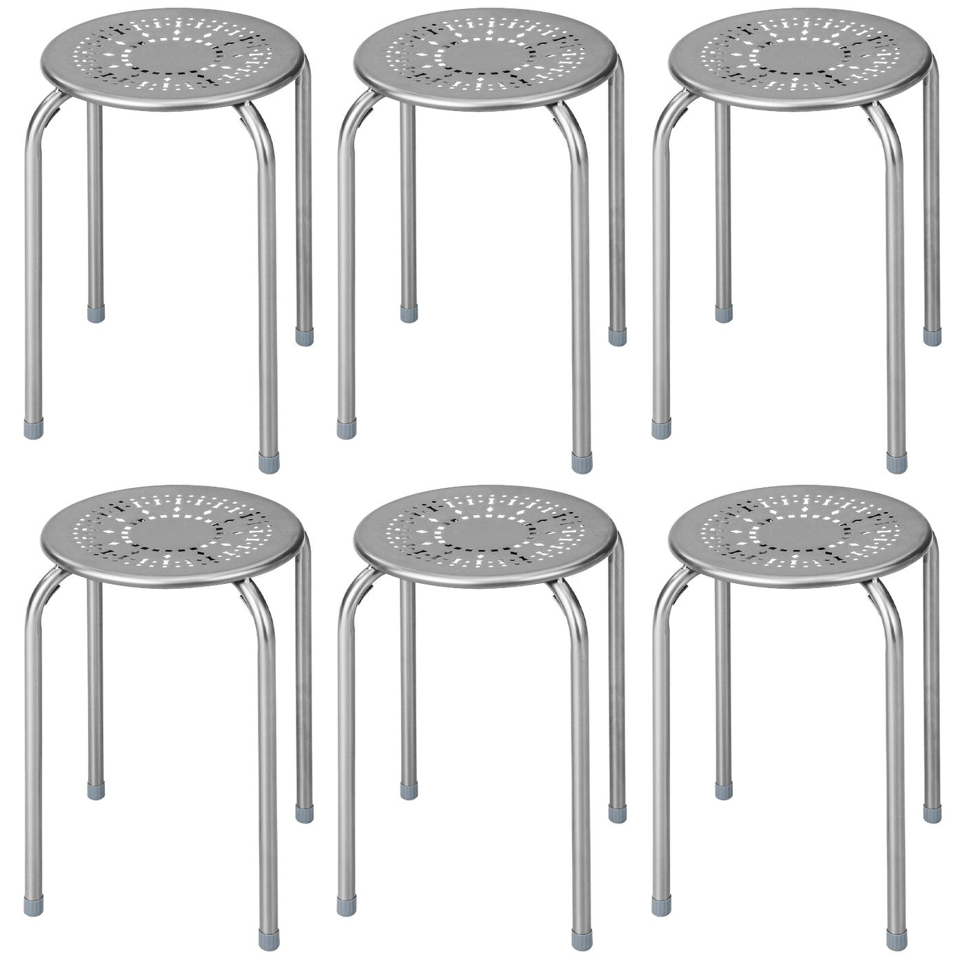Measures 30 cm in diameter, this metal stool's seat top provides a wide surface for comfortable sitting. With the stackable design, these stools won't take up much storage space. In addition, each stool has a hollow patterned seat surface for both ventilation and decorative purposes. Apart from that, crafted from plastic-coated metal, these stools feature high resistance to water and rust which is ideal for outdoor use. what's more, the X-shaped structure can easily hold up 80 kg of weight for daily use. In one word, these stack stools will be your ideal companion for home, office, school, etc. If you are looking for a Set of 6 Round Metal Stools like this, do not hesitate to place an order! High-Quality Metal: Crafted from a high-quality metal tube, this round stool is characterized by high sturdiness. In addition, the painted metal pipe features high resistance to water and rest, which guarantees long service life. Sturdy Construction: Supported with an X-shaped structure, this sturdy stool features a high load capacity of 80 kg. Additionally, the non-slip base prevents scratches to the floor, and adds extra safety to the whole structure. Stackable Design: Designed with a simple stackable structure, this set of 6 stools can be stored in a compact size when not in use, which will save you a lot of time and effort to organize them. For instance, it is especially suitable for crowded place such as classroom or party. Nice Patterns for Various Places: Fitted with attractive and beautiful patterns, this simple style stool will blend in easily with any indoor or outdoor decoration. In addition, the hollow-out seat surface also has a ventilation function to keep you cool on summer days. No Assembly: With no assembly steps required, this stool set will save you a lot of effort and time. Just take the stool out of the box for convenient use whenever you want. Apart from that, the stool surface is easy to clean with a damp towel.