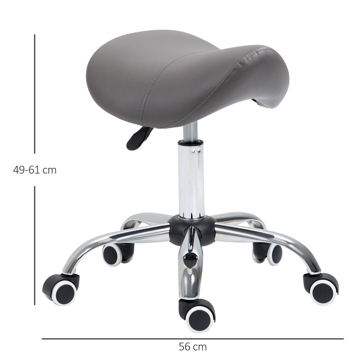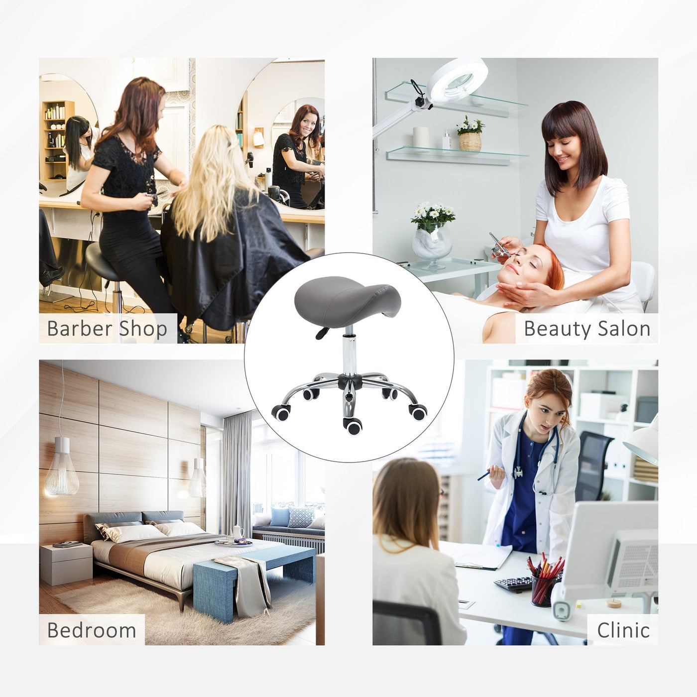 HOMCOM Cosmetic Stool 360 Rotate Height Adjustable Salon Massage Spa Chair Hydraulic Rolling Faux Leather Saddle Stool, Grey - Grey