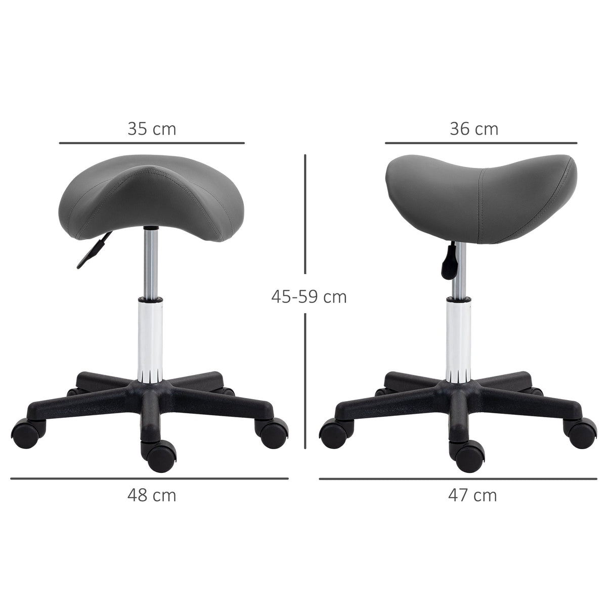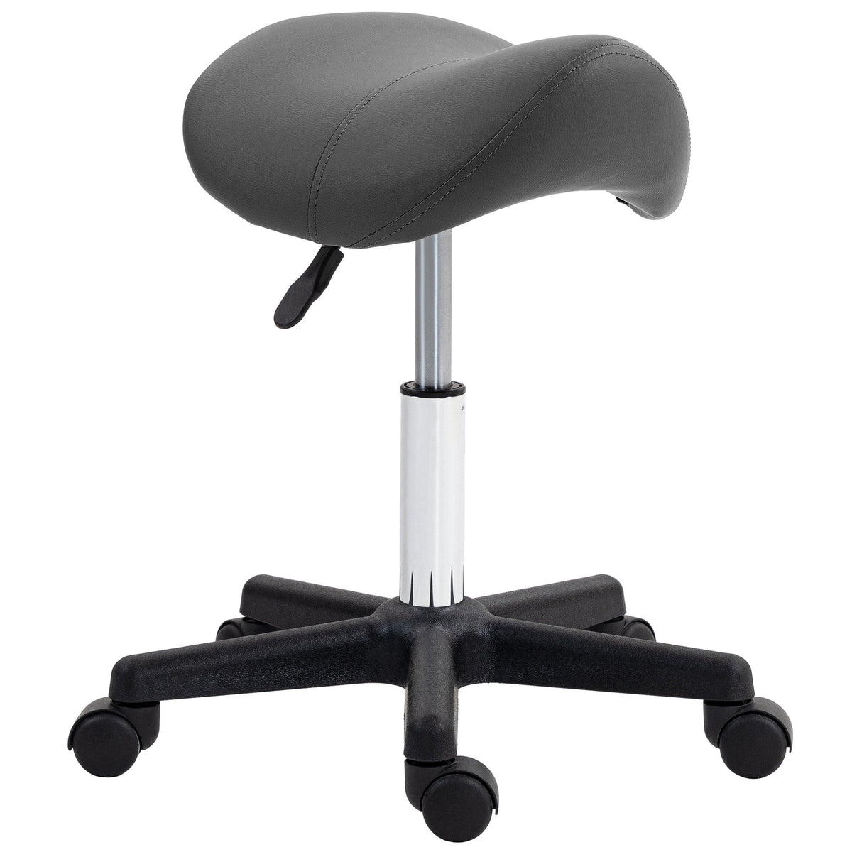 HOMCOM Saddle Stool, PU Leather Adjustable Rolling Salon Chair with Steel Frame for Massage, Spa, Beauty and Tattoo, Grey - Grey
