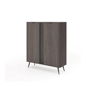 Maximise vertical space with the Veris Highboard Cabinet 113cm, combining towering storage with elegant proportions that suit modern living. Its two hinged doors reveal four spacious shelves, perfect for displaying treasures or concealing everyday items with ease. The premium finish pairs beautifully with bold metal accents, while rounded edges add contemporary softness to its structured silhouette. Standing tall on sleek legs, the Veris Highboard delivers generous storage for dining rooms or living areas.