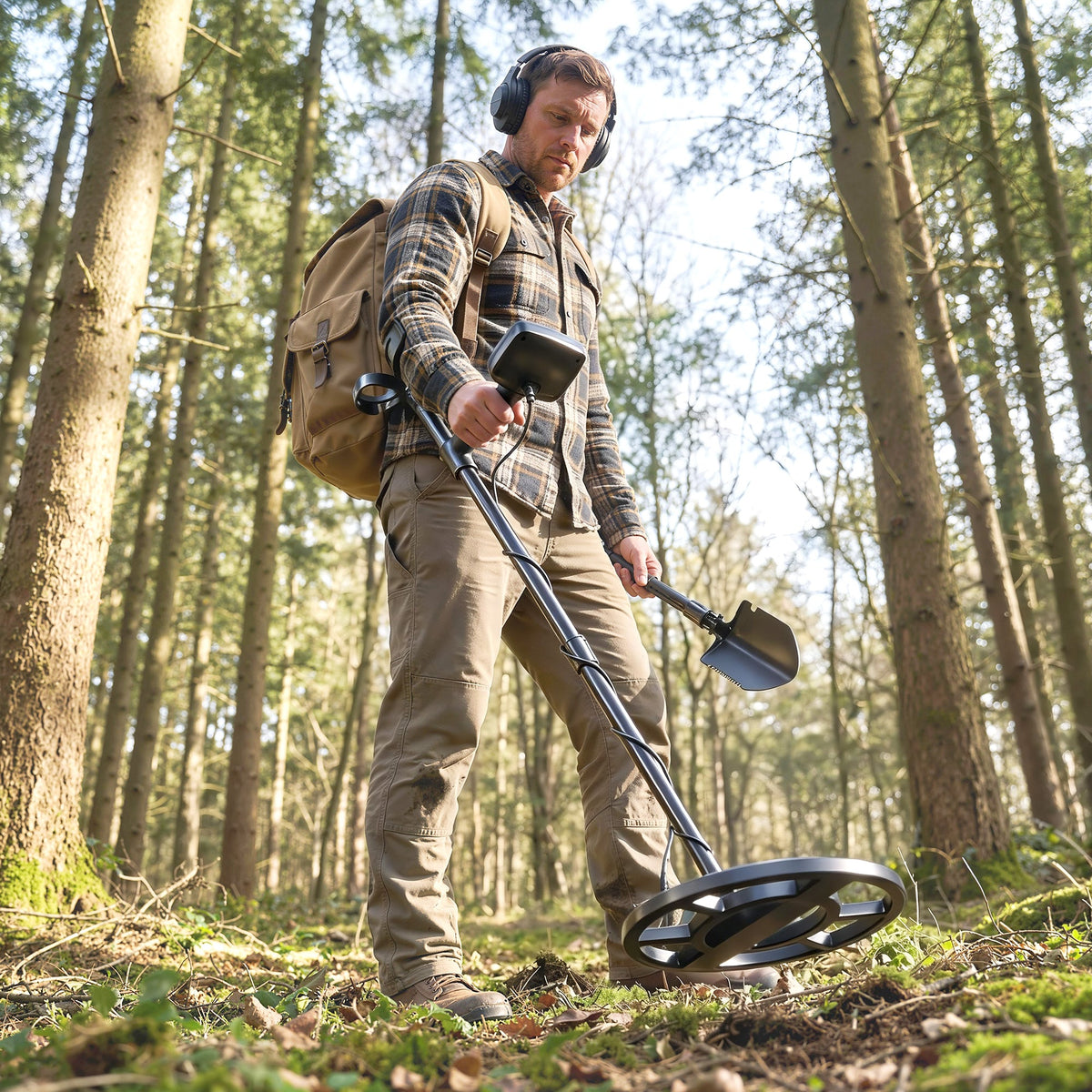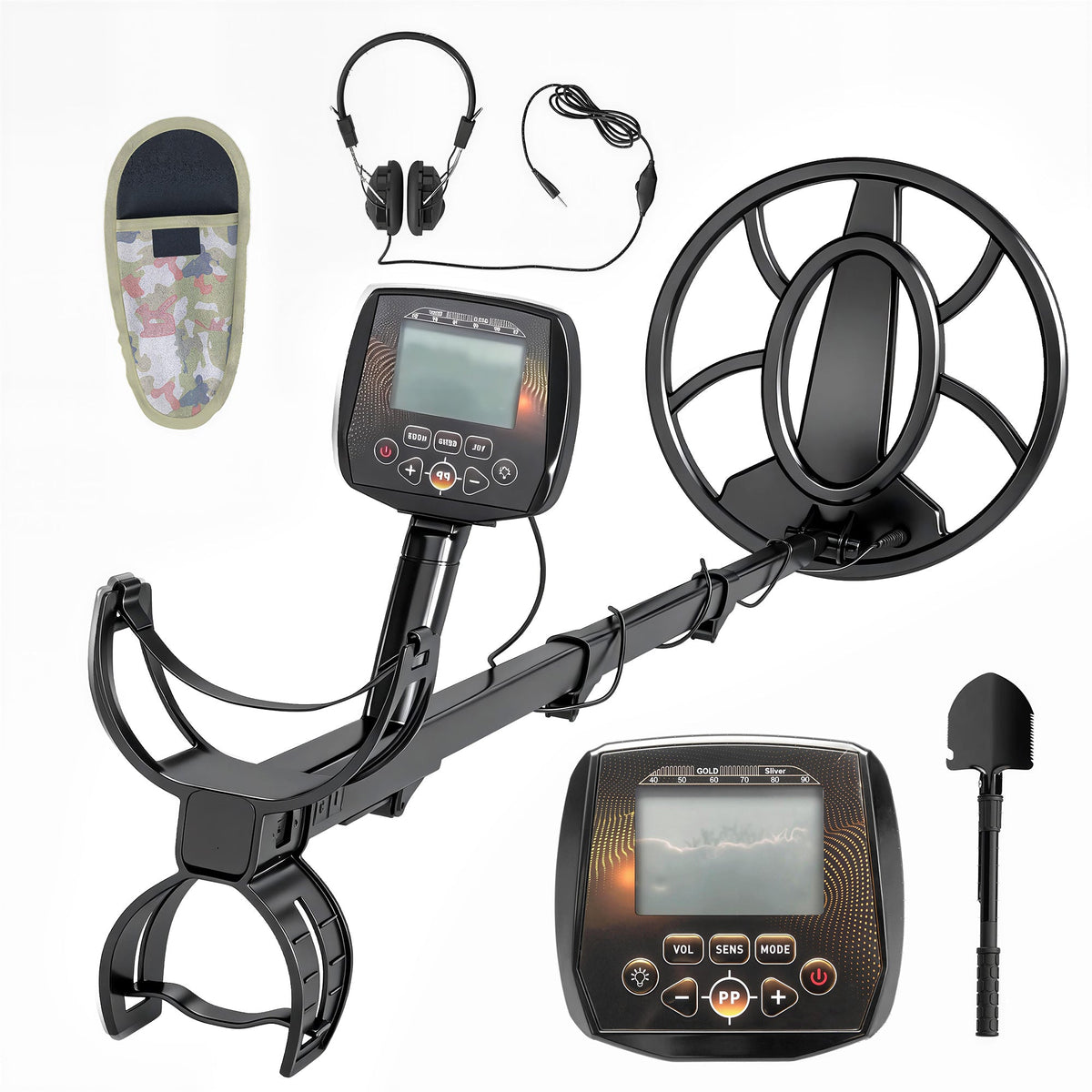 Outsunny Metal Detector for Adults, IP68 Waterproof Search Coil with LCD Display, 5 Modes Gold Detector with Carry Bag, Shovel - Black