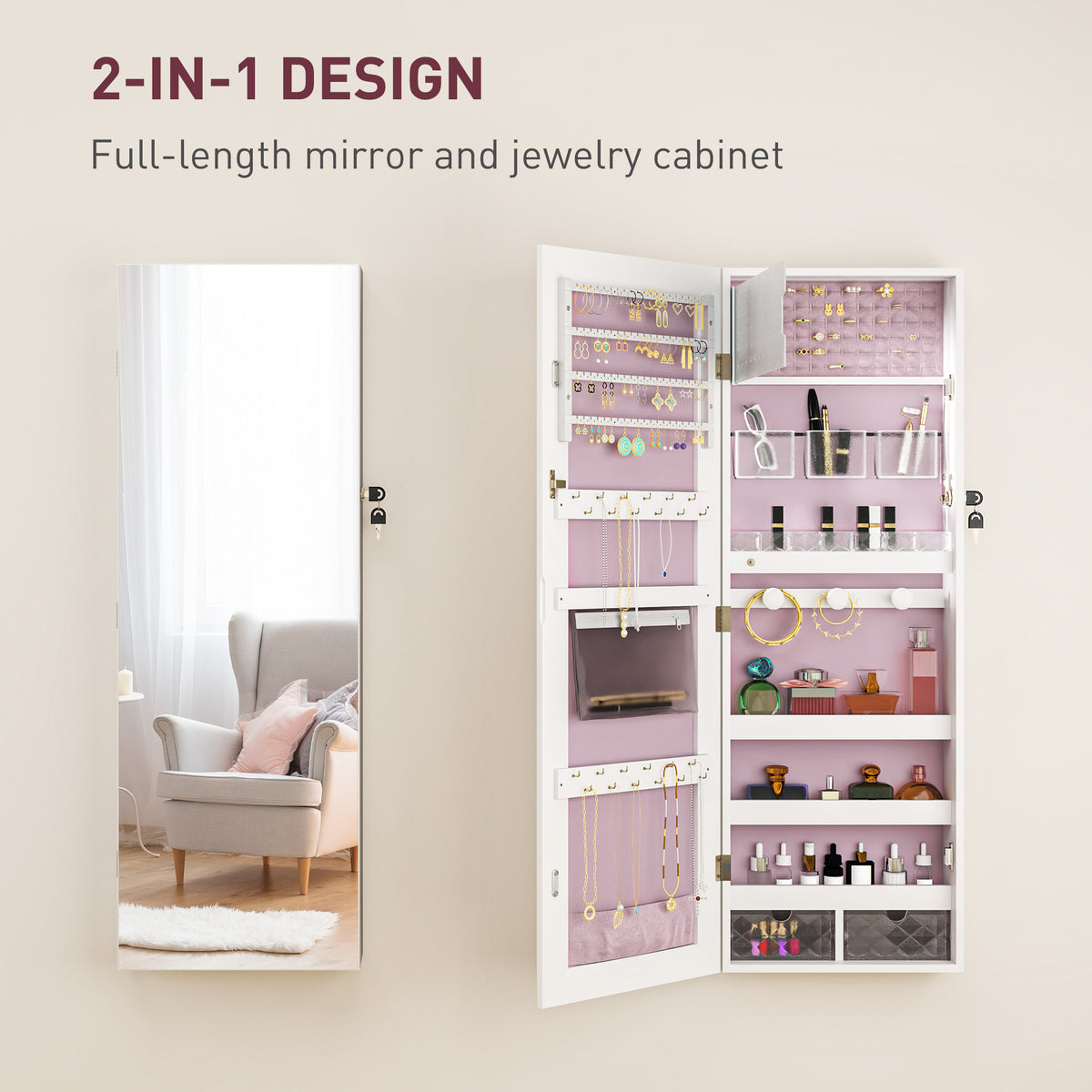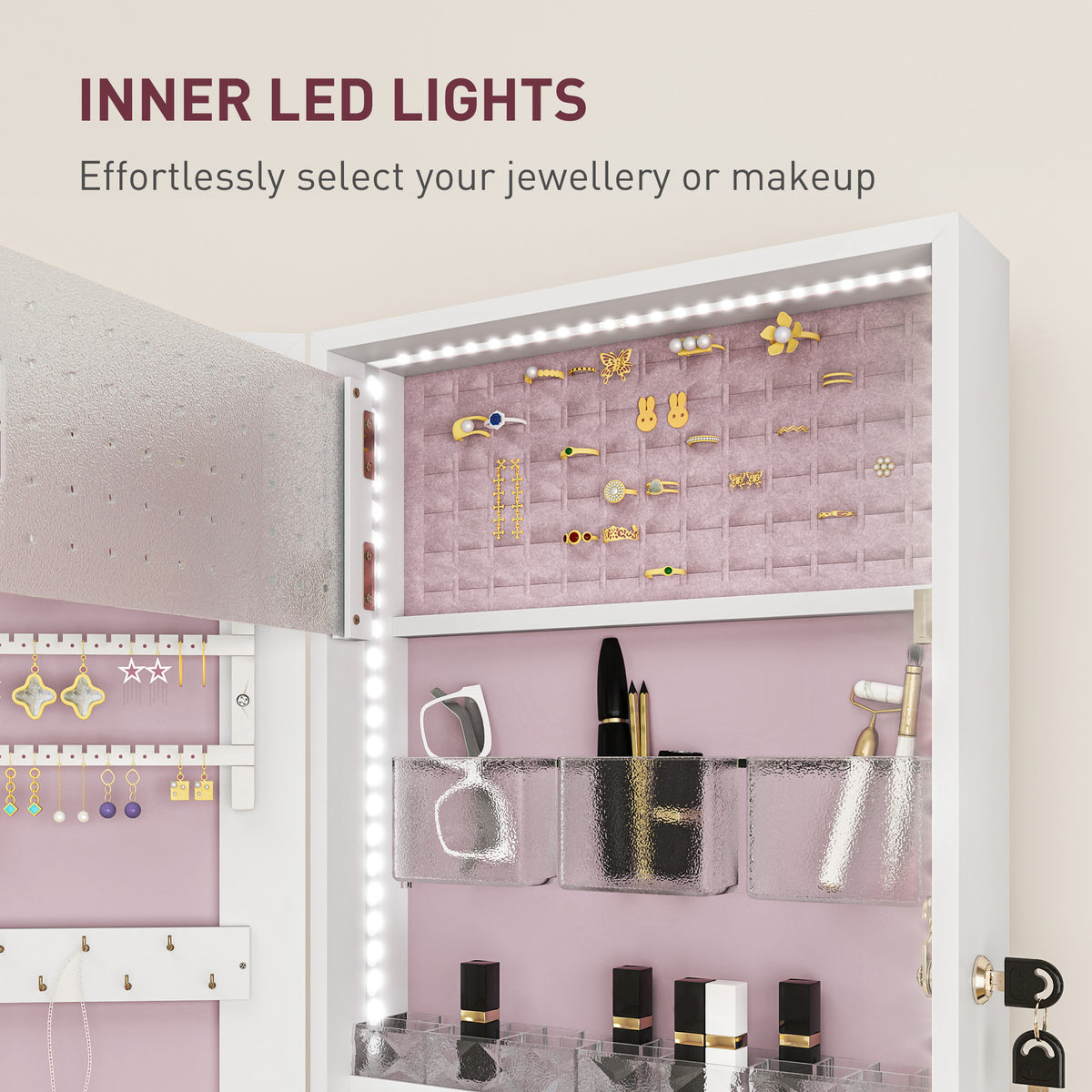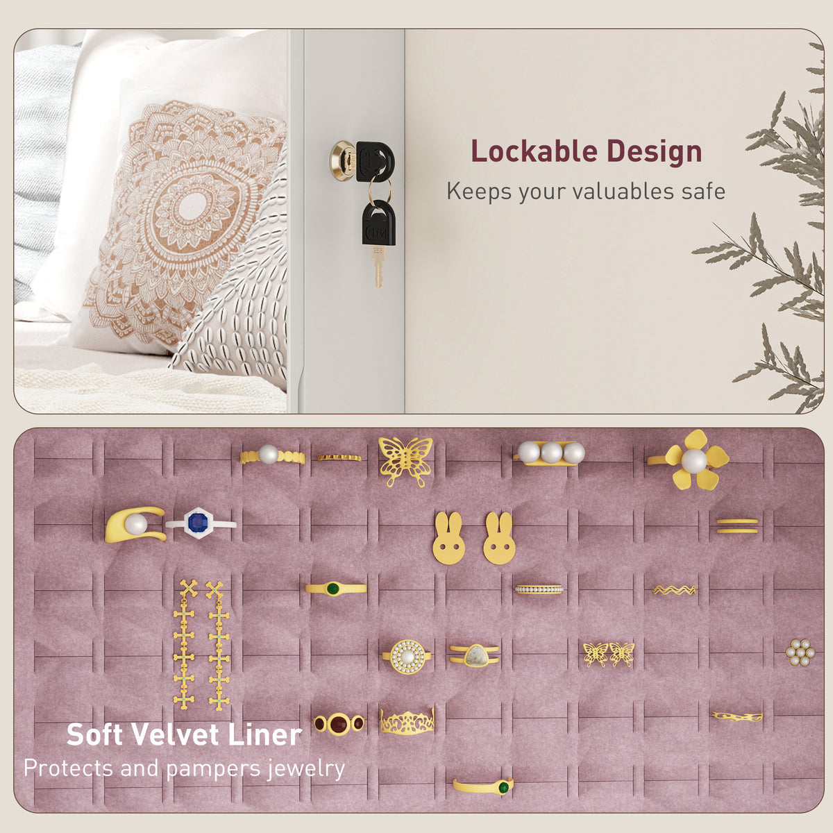 HOMCOM 108 x 37cm Lockable Jewellery Cabinet, with LED Lights - White Surface and Pink Lining - White Surface, Pink Lining
