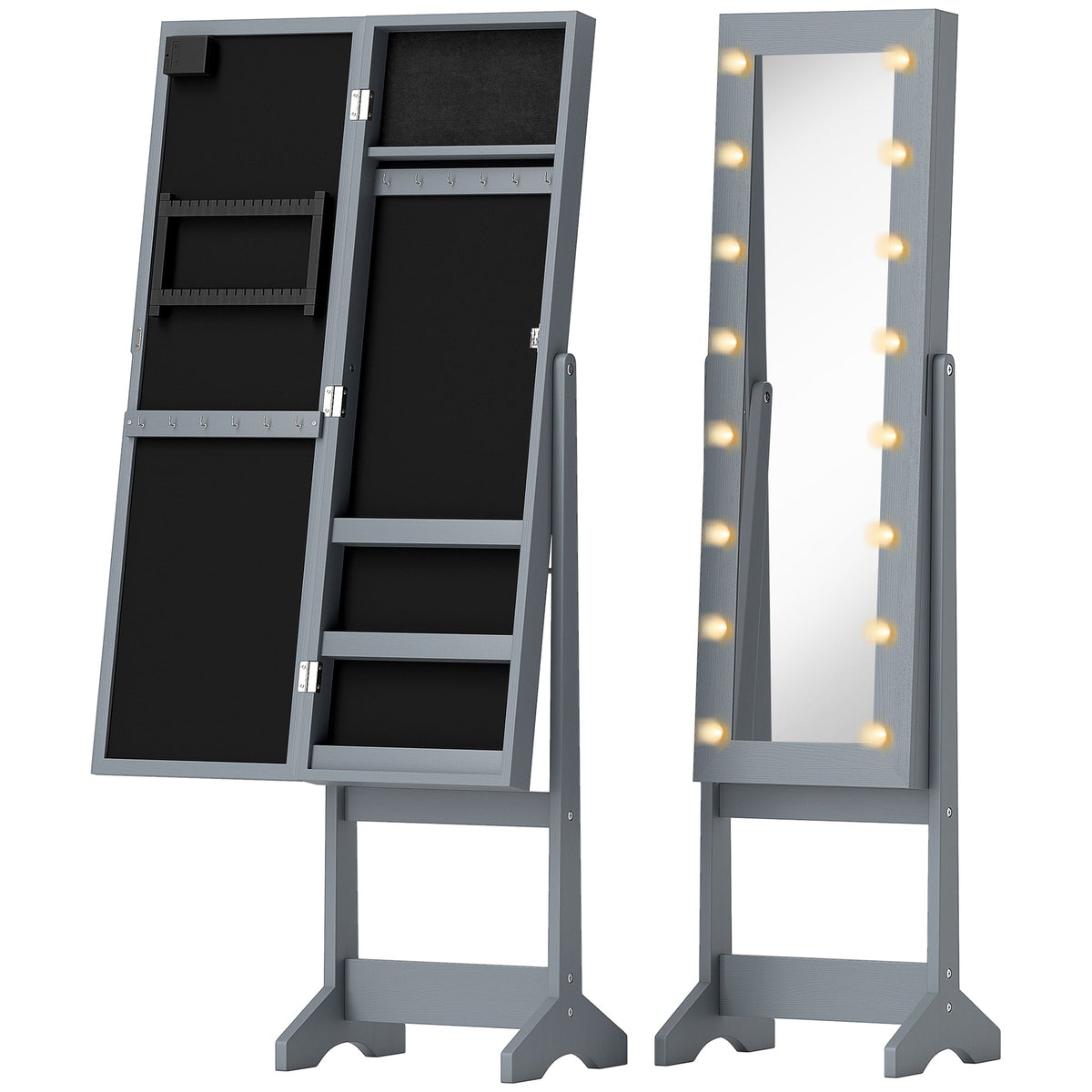 Keep jewellery, makeup and more organised with this HOMCOM freestanding mirror cabinet. It features a longline mirror, surrounding by 16x...