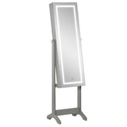 HOMCOM Jewellery Cabinet with LED Light, Lockable Jewellery Organiser with Full-Length Mirror for Bedroom Dressing Room, Grey - Grey