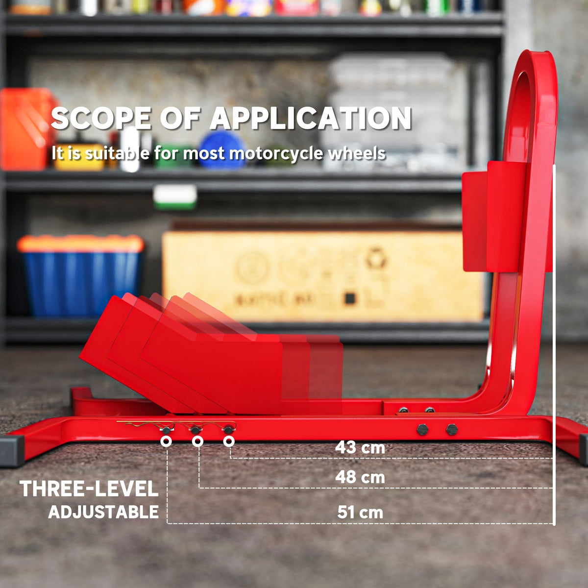 HOMCOM Metal Motorcycle Motorbike Wheel Chock Locking Stand System 17", 19", 21"/43, 48, 51 cm Front Wheels Steel Adjustable Fixing Tyre Holder Support - Red