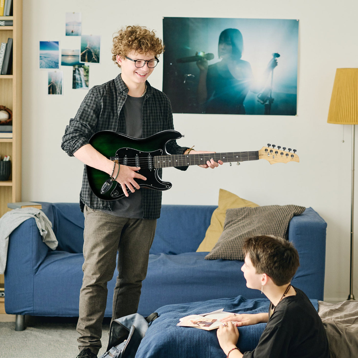 SPORTNOW Six-String Electric Guitar, with 15W Amplifier, Digital Turner, Picks, Shoulder Strap, Case Bag - Dark Green - Black