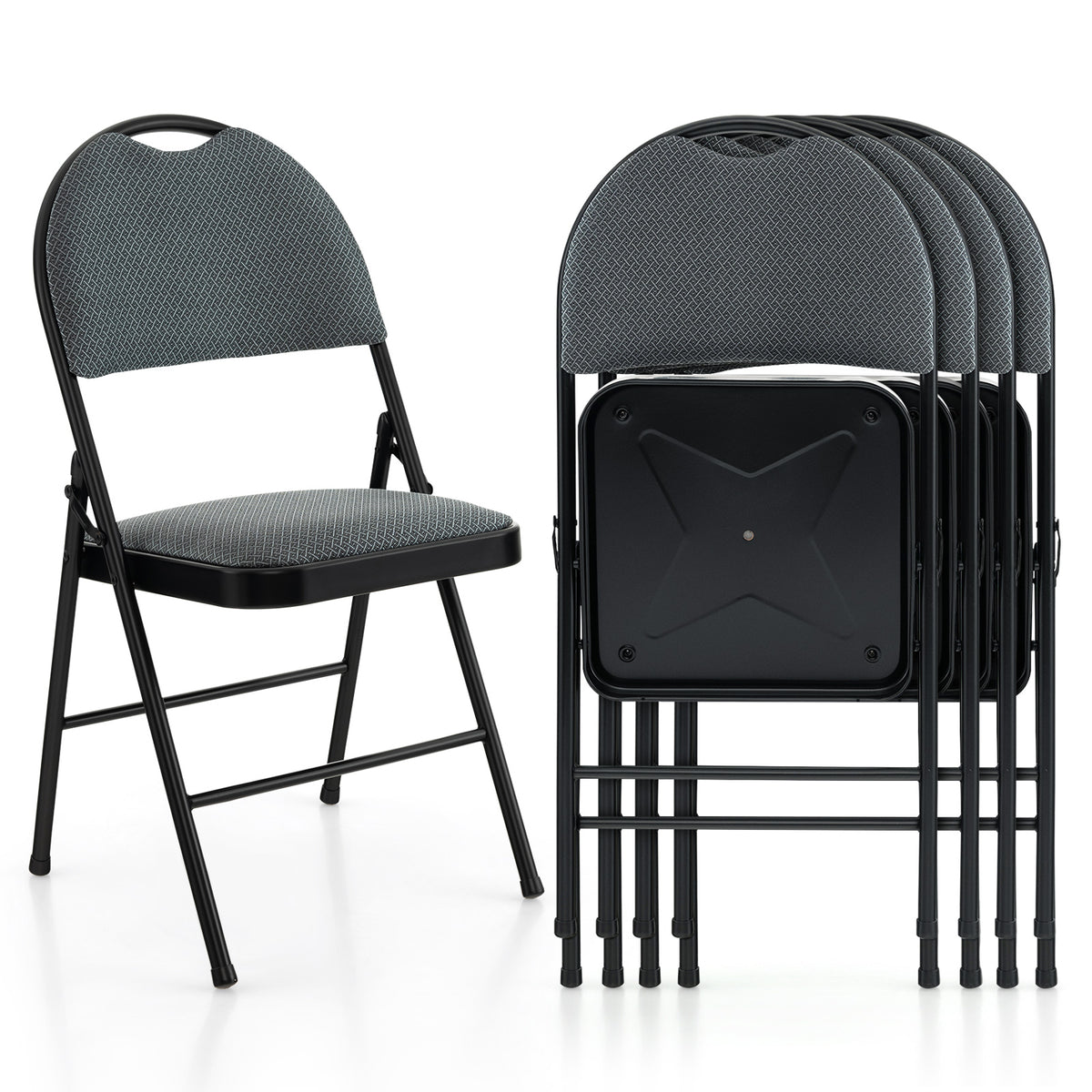 Each seat is built to combine style and function, featuring an integrated footrest and padded seat to give you a comfortable sitting experience. The six folding chairs are upholstered in an attractive fabric with padding on the seat and back for ultra comfort. The event chairs are made of a sturdy steel frame and non-marring feet that will not damage your floors for long lasting performance. All these chairs fold compactly for easy storage when not in use. Its black metal appearance and beautiful argyle pattern add a unique artistic style to any space. And they are lightweight with built-in handle design for easy relocation, ideal for home, office, school. These set of 4 folding chairs provide convenient seating solution for gatherings, events and more. Comfortable Padded Seating with Footrest: The event chairs are upholstered in an attractive fabric with soft padding on the seat and back for superior comfort. This comfortable chair with ergonomic backrest will support your spine for a great sitting posture. The bottom footrest can relax your tired legs and provide stable comfort. Portable Folding Chair with Handle: This metal chair features a built in handle and quick folding mechanism to collapse the chair down into compact size for easy portability and space-saving storage. You can store it under the bed, in the corner or keep aside for future use. And the light weight design allow you to carry the chair from place to place with ease. Sturdy Steel Structure with Non-marking Feet: Each folding chair is constructed from steel tubing for strong strength and durability. The sturdy triangular structure is equipped with double hinges and stability plugs, giving each chair a 100kg maximum weight capacity. And the non-slip feet adds extra stability and prevent scratching your floor when moving the chair. Easy Setup for Many Occasions: No assembly required, these upholstered folding chairs are ready to use in no time. This set of 4 folding chairs give additional seating option for parties, trade shows, reception areas, conferences, receptions, training rooms and banquet venues. These lightweight, functional and stylish chairs are suitable for any home, school or office environment. Simple Classic Look and Easy Maintenance: The beautiful argyle patterns cooperated with black glossy finish give the compact folding chair a stunning look to match any style of home decor. In addition, the durable powder coat paint will prevent damage from rust and corrosion, keeping the set look as good as new.