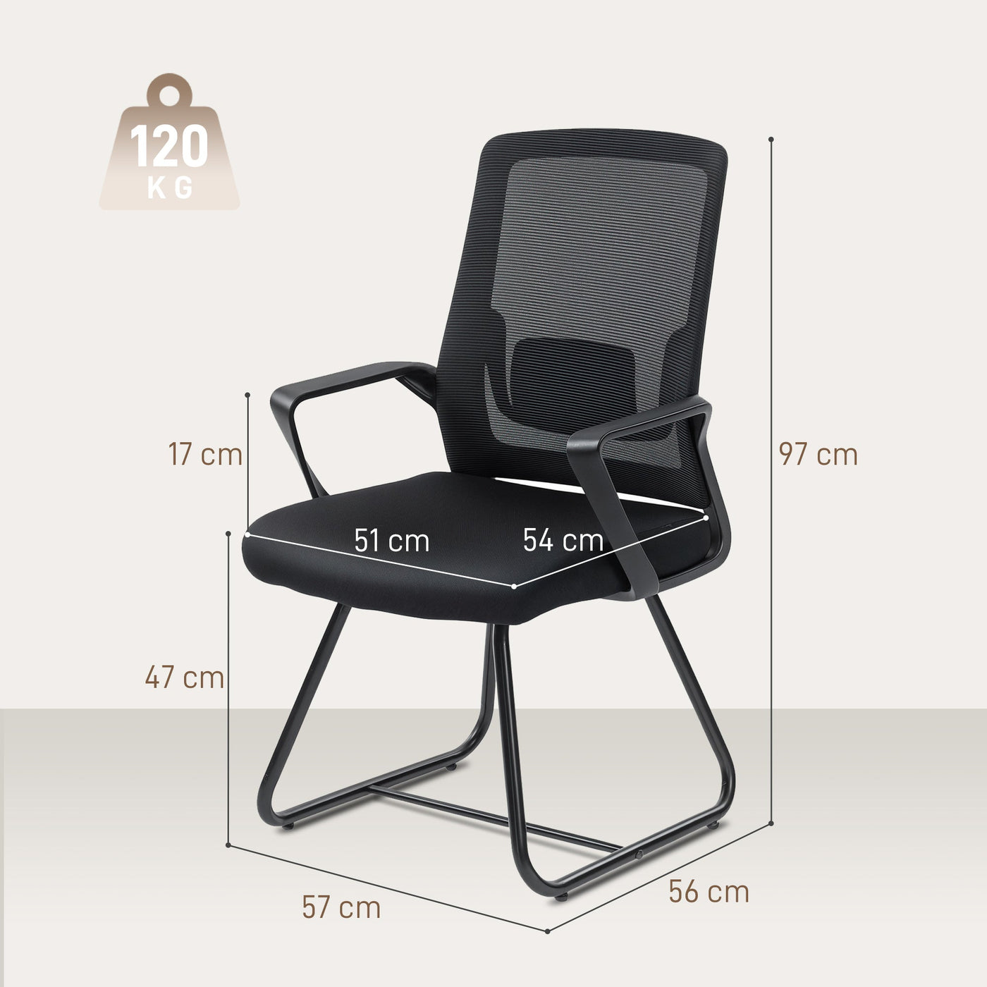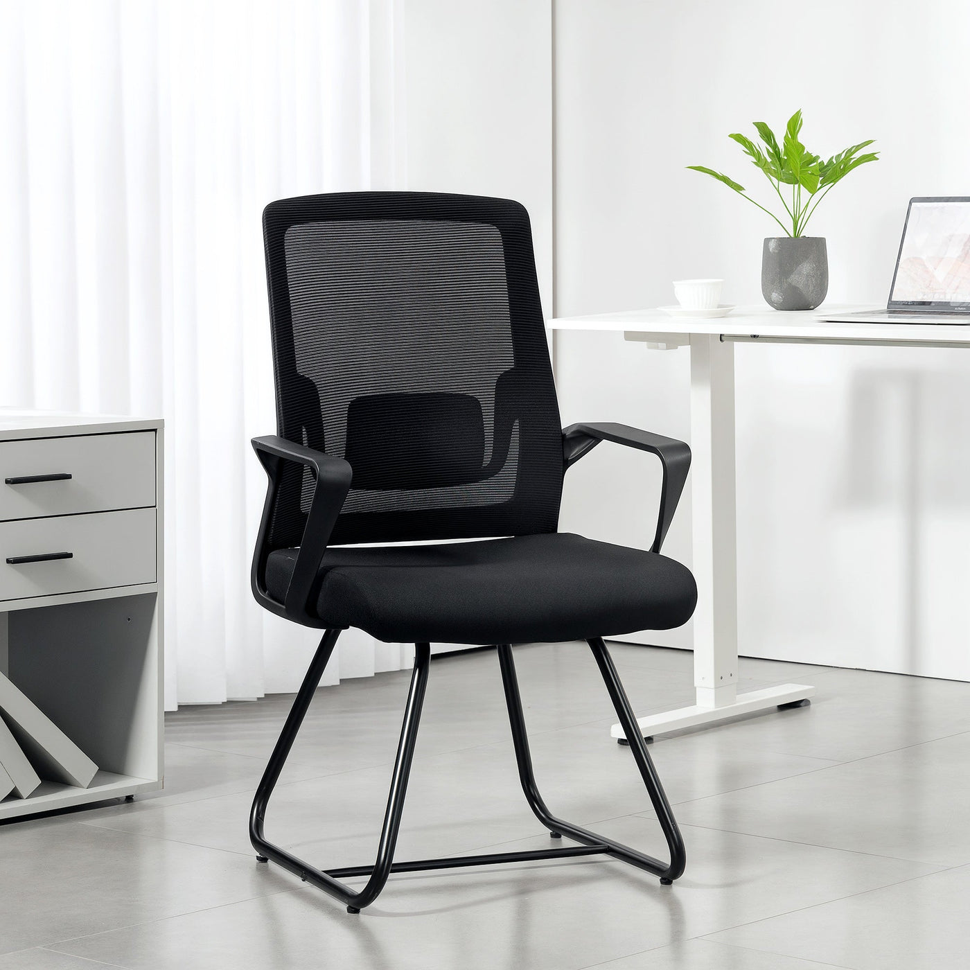 HOMCOM Desk Chair No Wheels, Office Chair with Mesh Back, Lumbar Support, Metal Base for Waiting Room, Conference Room, Black - Black
