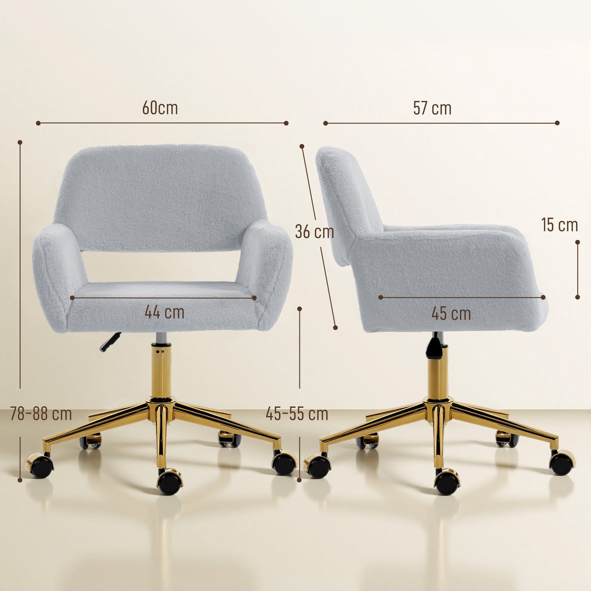 All the softness as you work, all day long - this HOMCOM faux fur office chair. Filled with high-density foam...